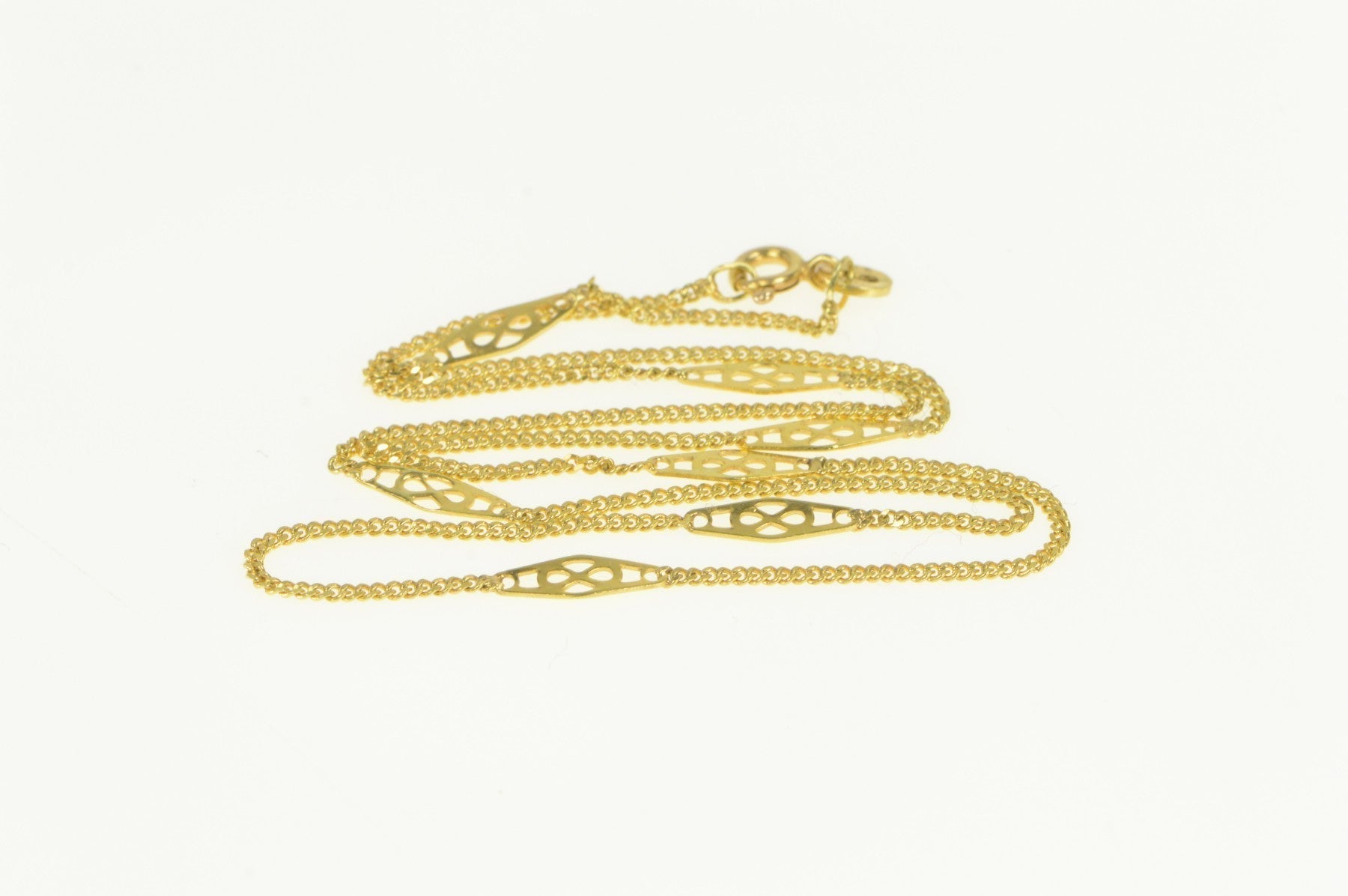 ·Item: 14K 1.3mm Curb Link Filigree Vintage Chain Necklace 16" Yellow Gold