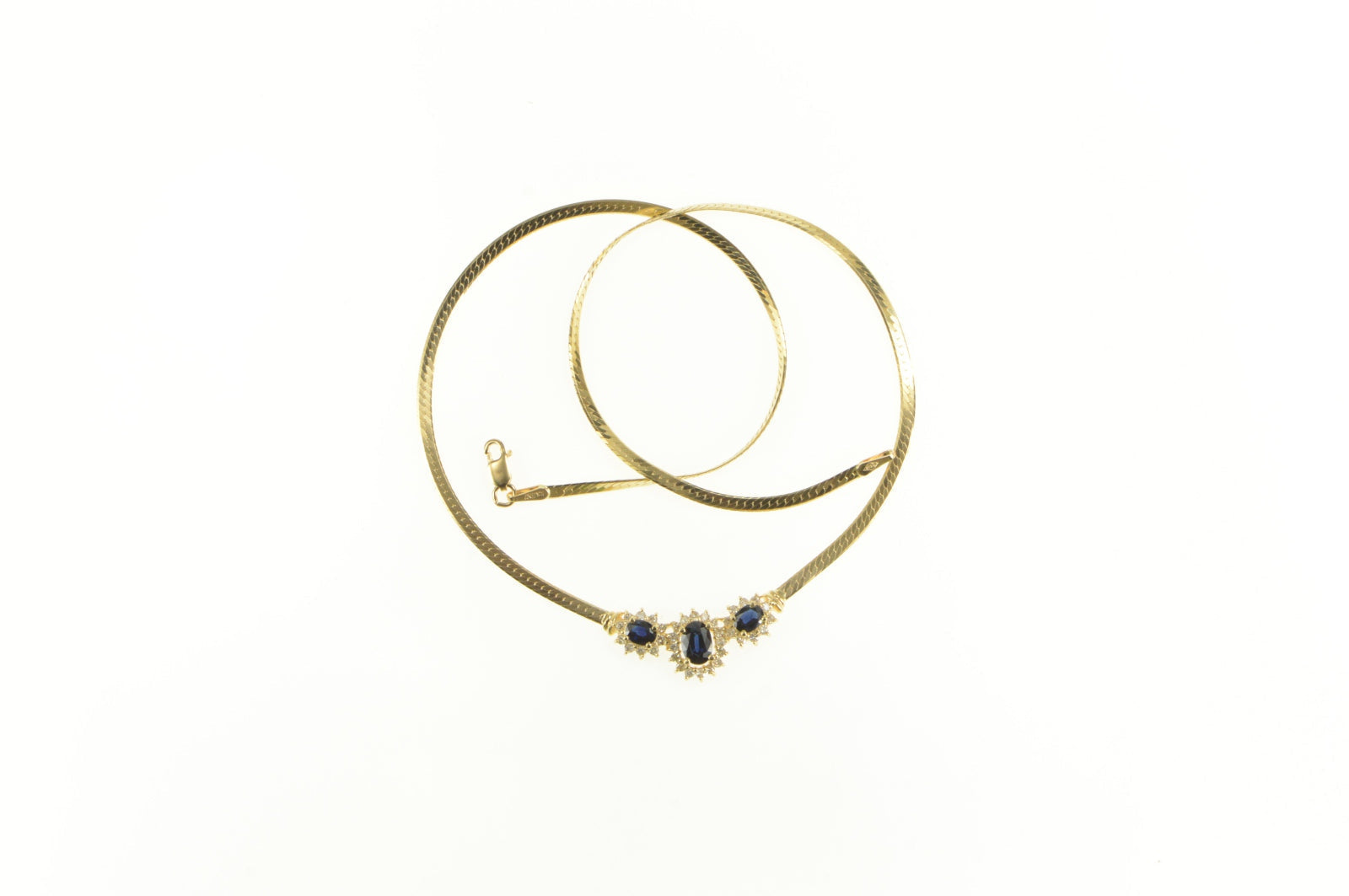 ·Item: 14K 1.88 Ctw Sapphire Diamond Halo Herringbone Necklace 16" Yellow Gold