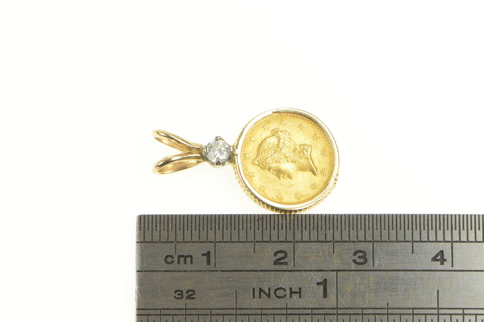 ·Item: 14K 1852 One Dollar $1 Diamond Accent US Coin Pendant Yellow Gold