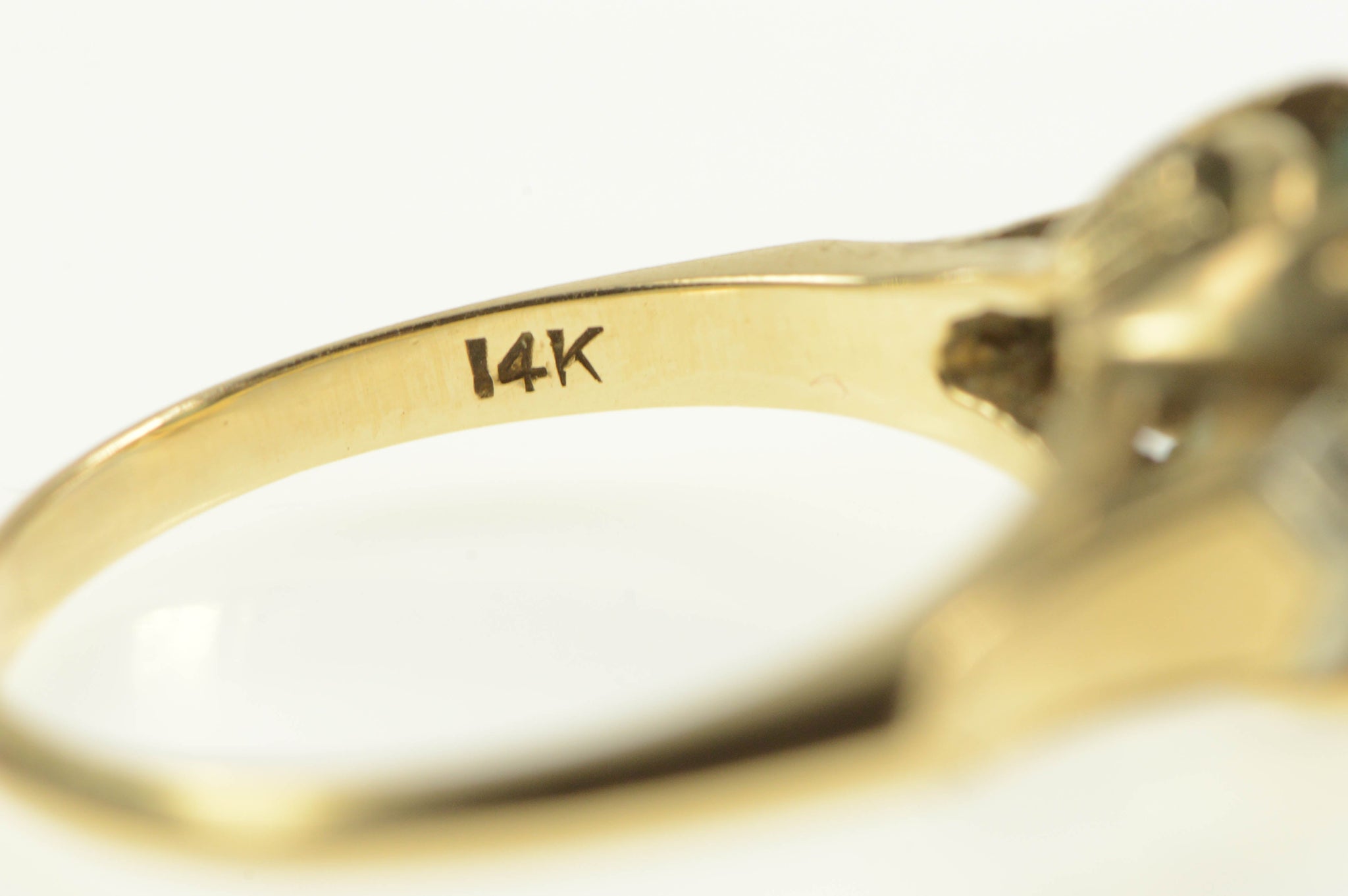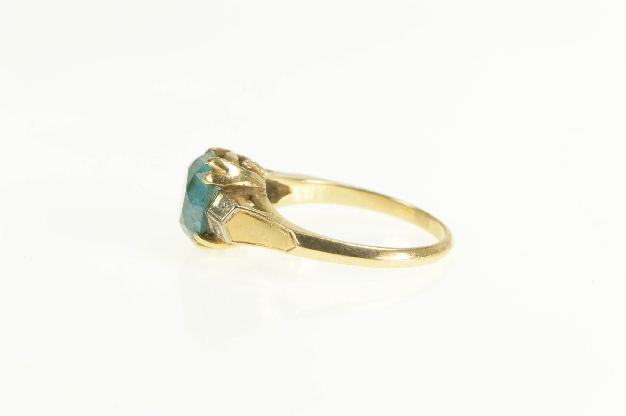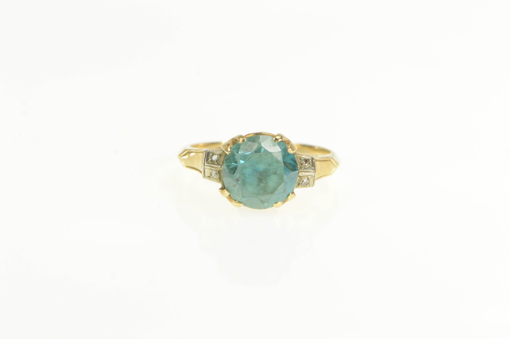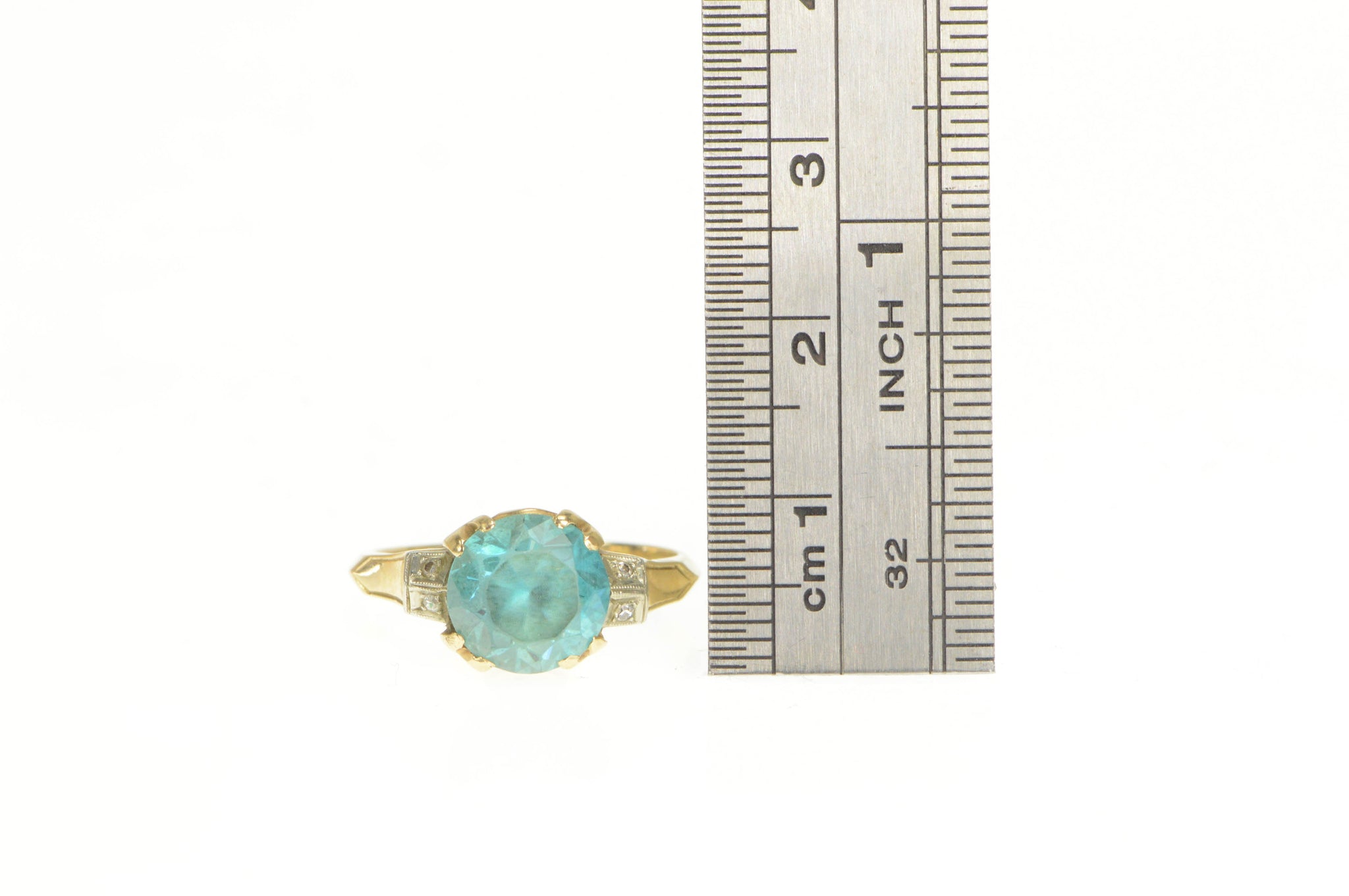·Item: 14K 1940's 3.04 Ctw Blue Topaz Diamond Accent Ring Size 7 Yellow Gold