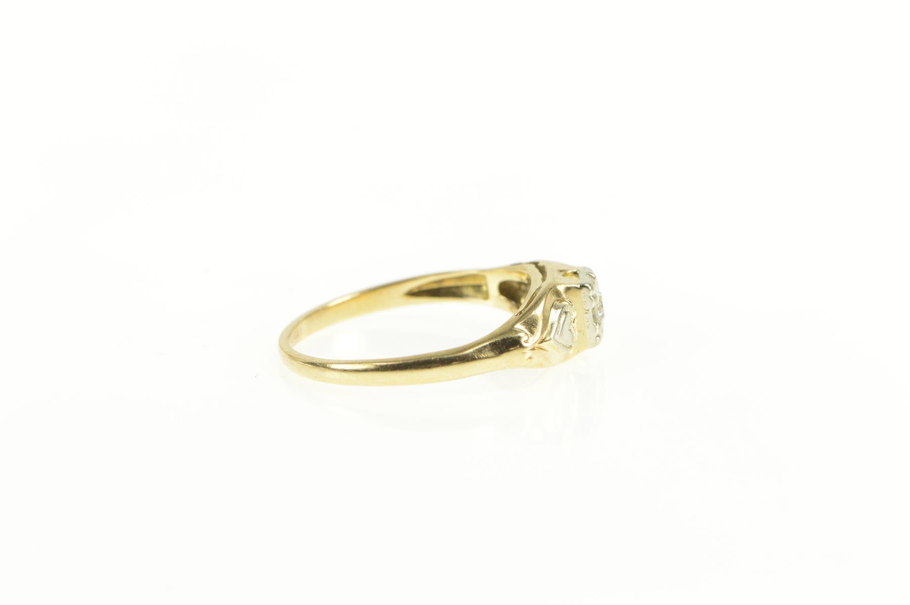 14K 1940's Diamond Heart Accent Classic Promise Ring Yellow Gold
