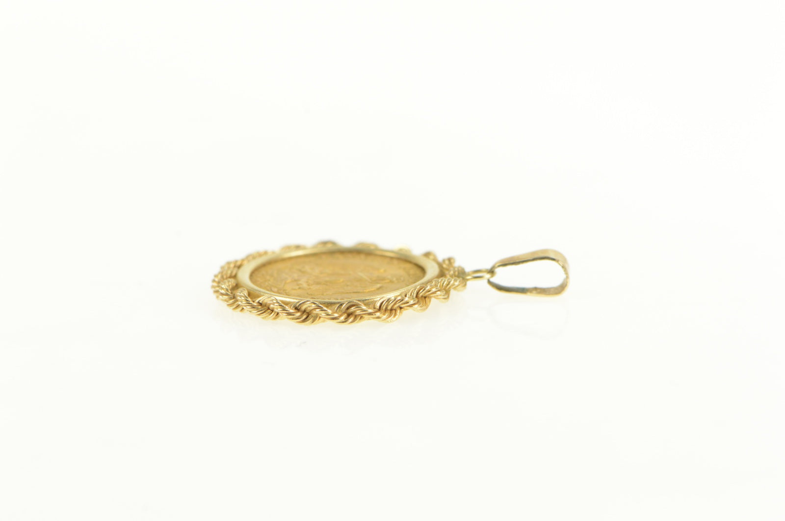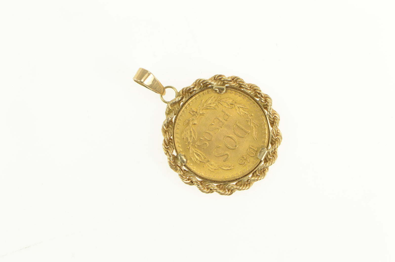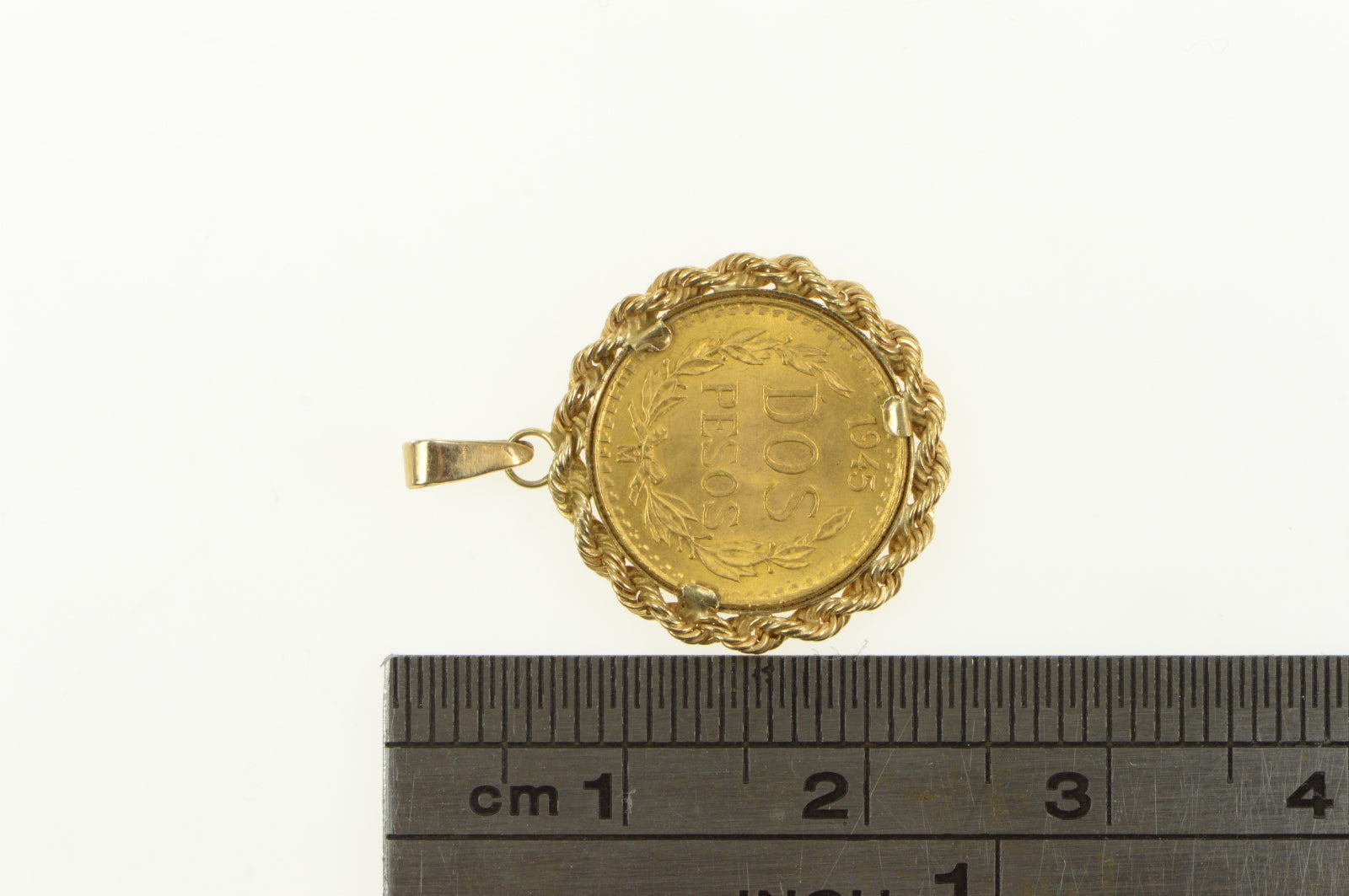 ·Item: 14K 1945 Dos Pesos Mexican $2 Coin Rope Trim Charm/Pendant Yellow Gold