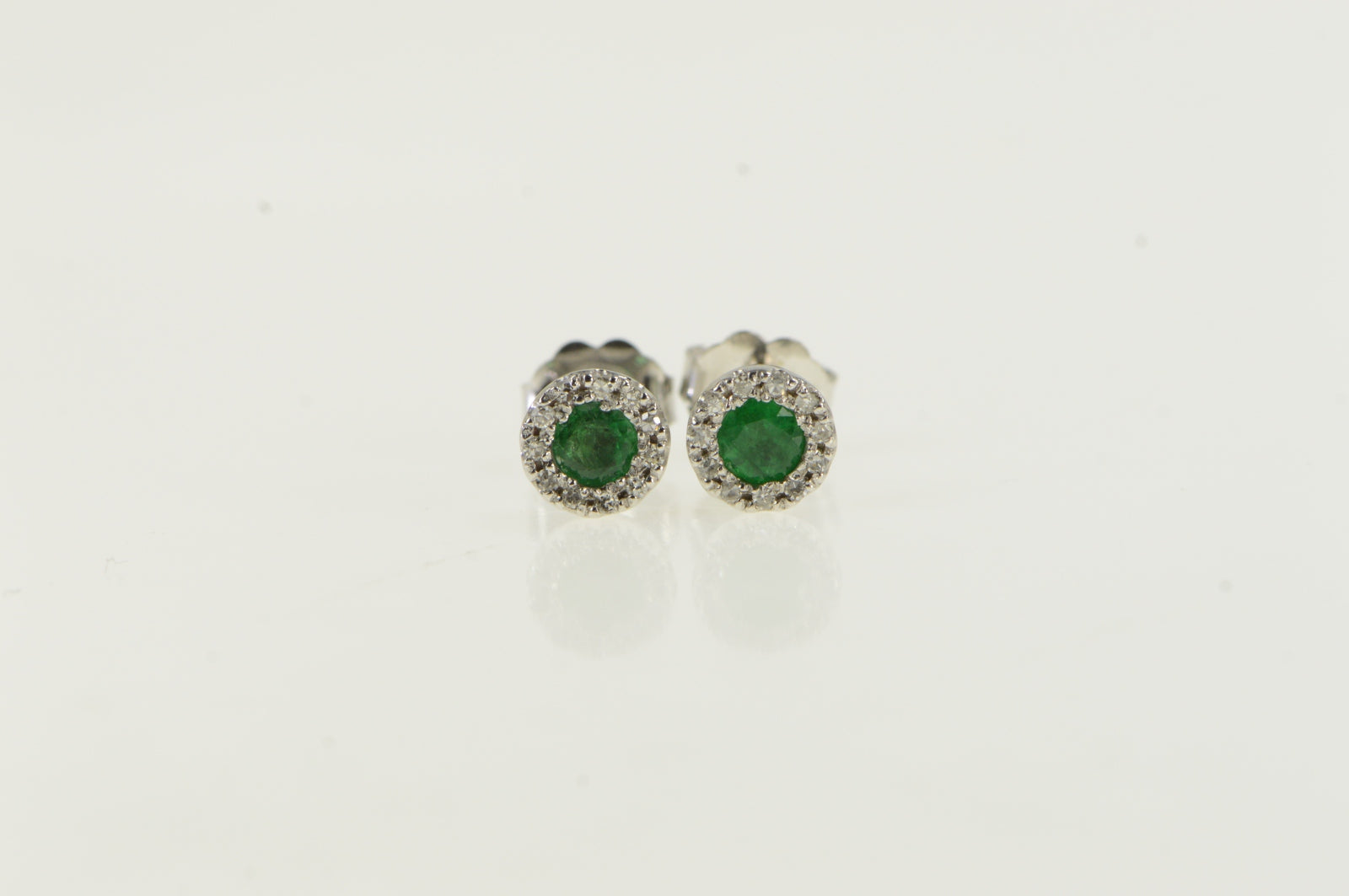 ·Item: 14K 1950's 0.53 Ctw Emerald Diamond Halo Stud Earrings White Gold