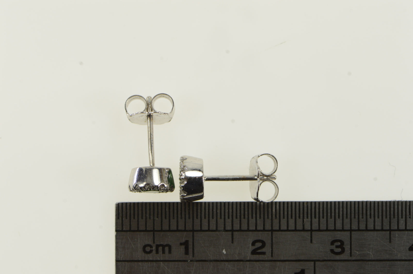14K 1950's 0.53 Ctw Emerald Diamond Halo Stud Earrings White Gold