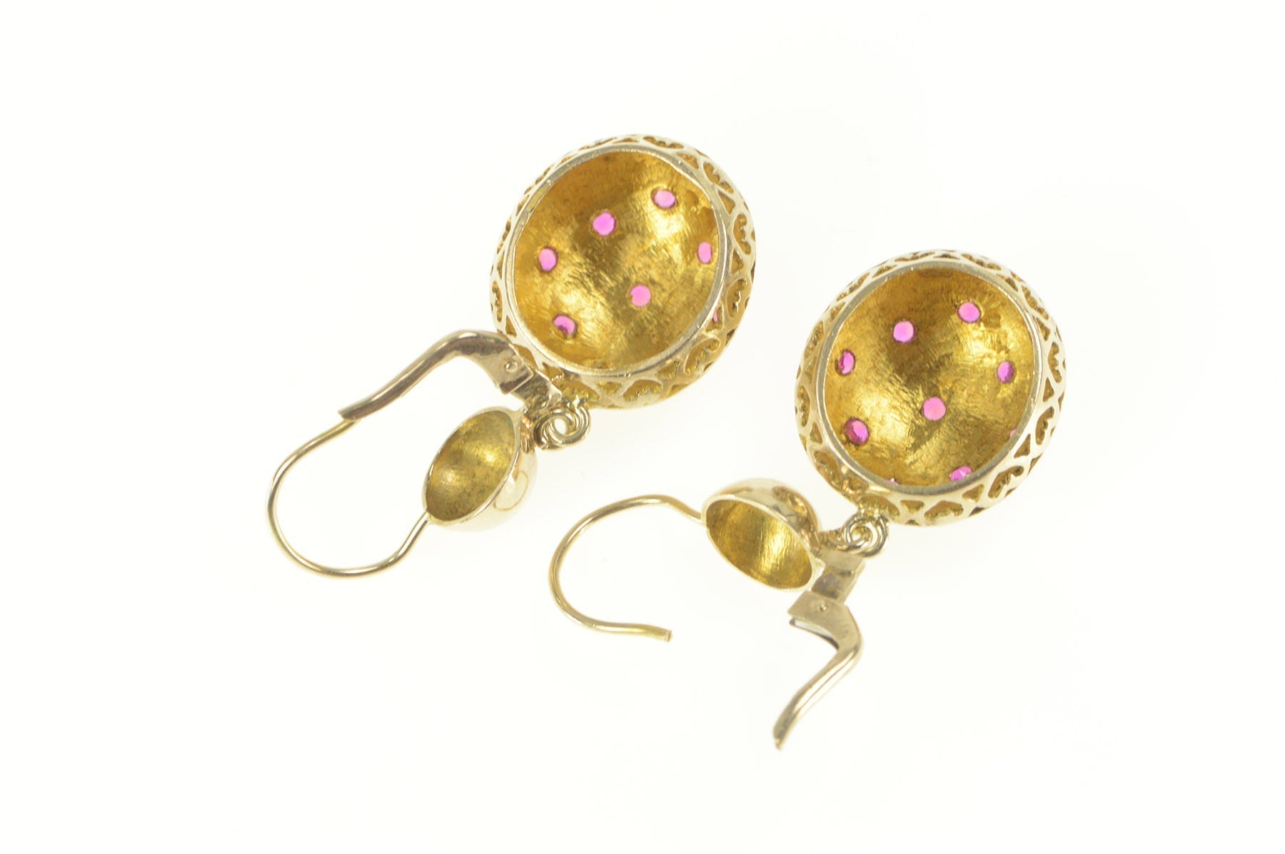 14K 1960's Domed Sputnik Syn. Ruby Dangle Earrings Yellow Gold