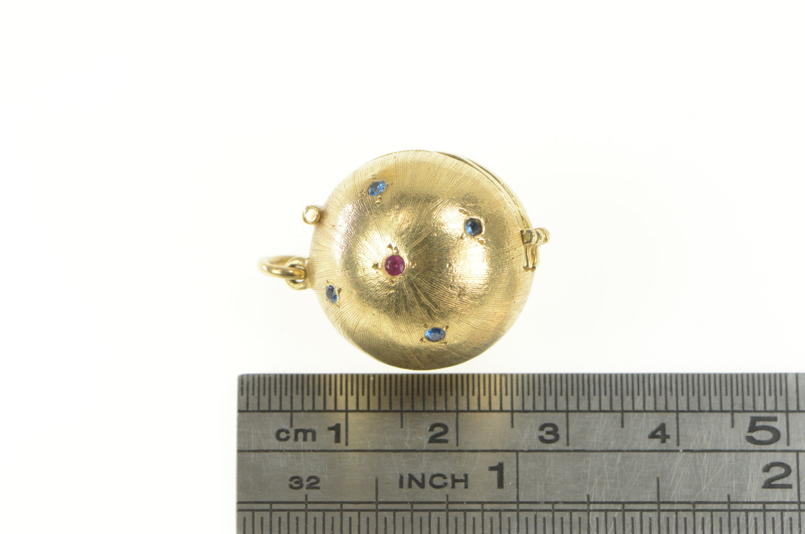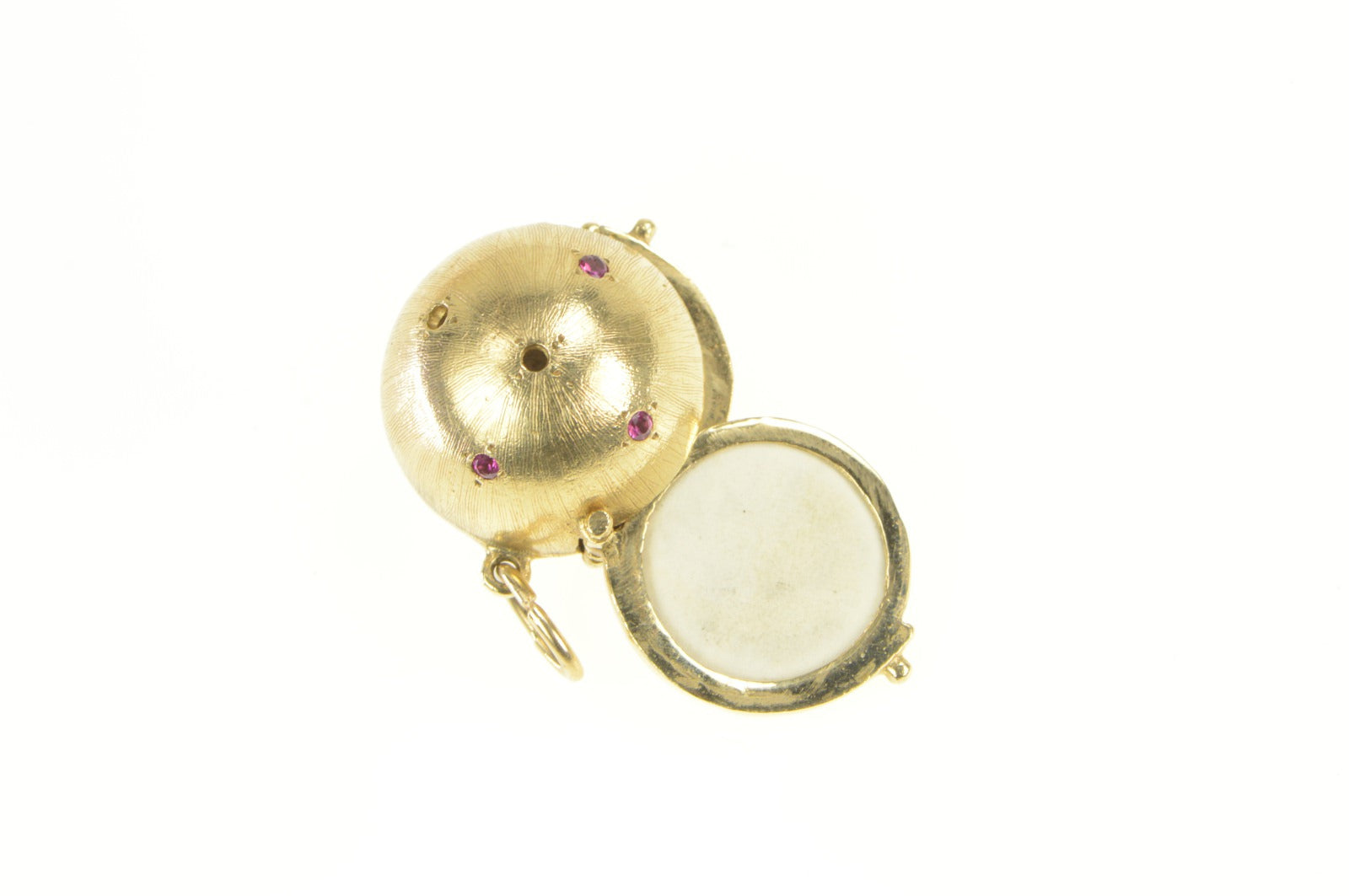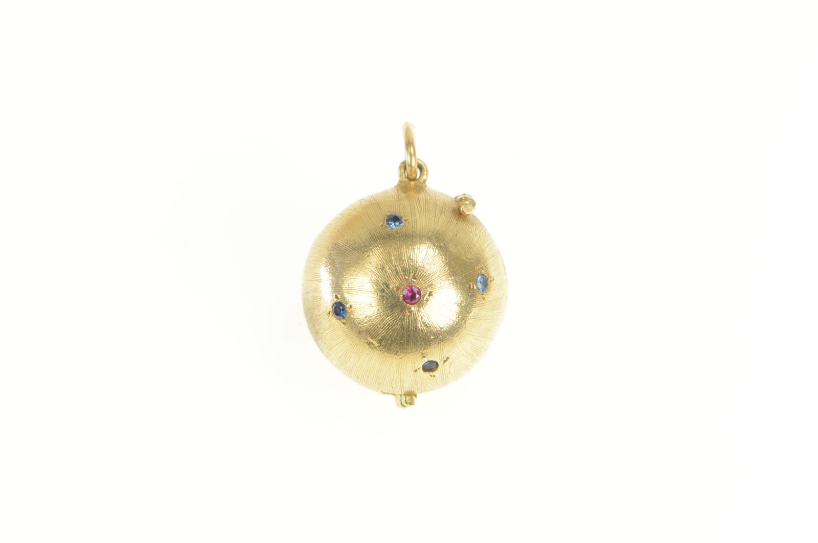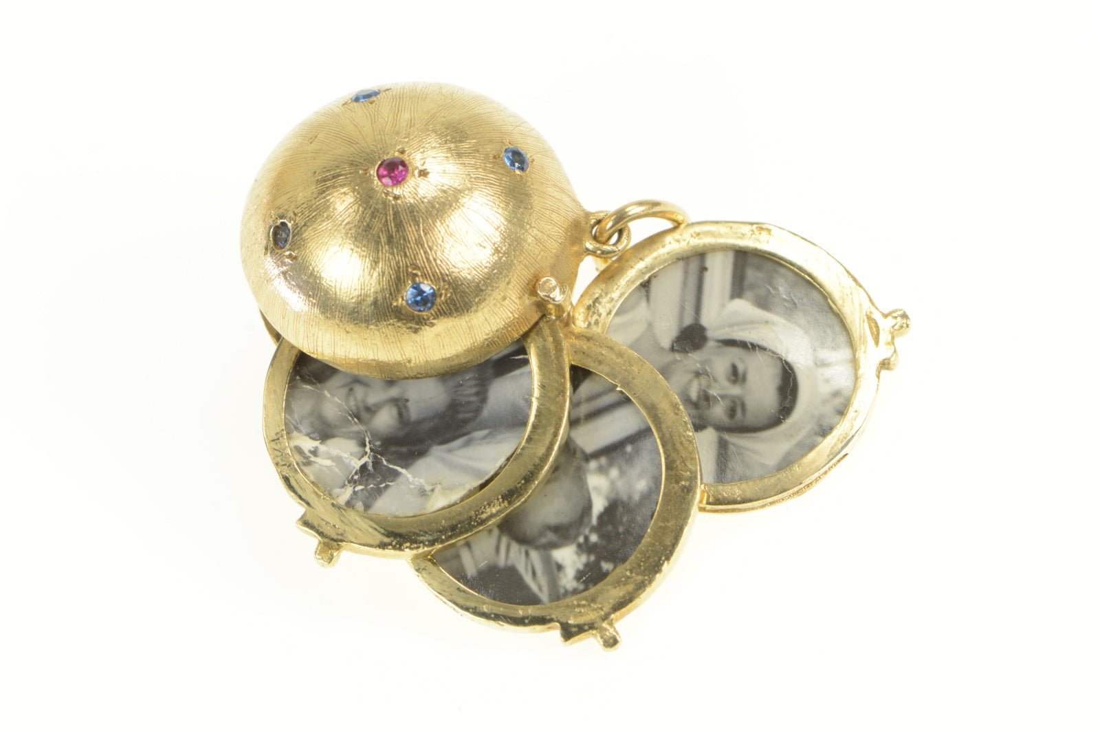 ·Item: 14K 1960's Sapphire & Ruby Ball Photo Locket Picture Pendant Yellow Gold
