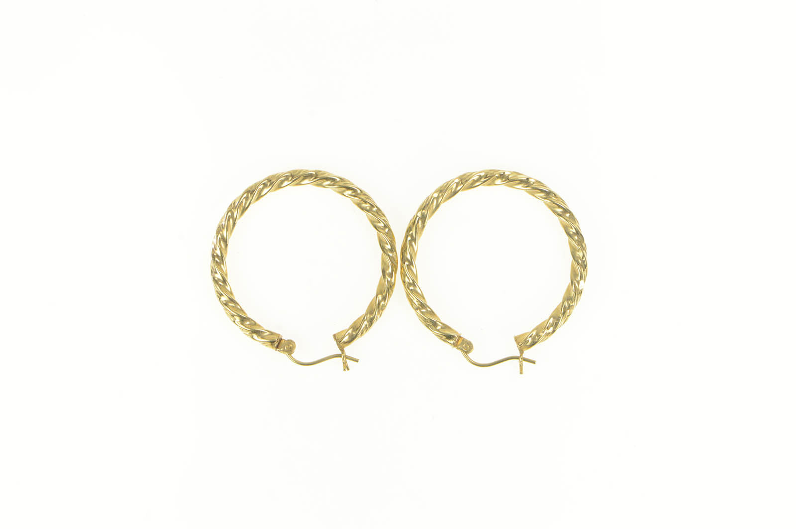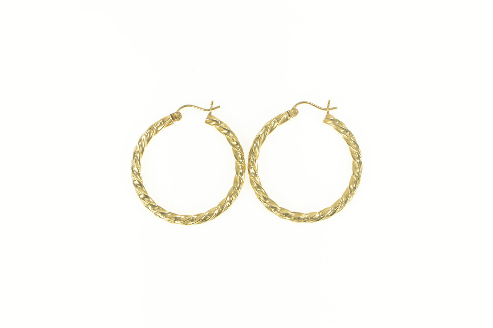 ·Item: 14K 30.7mm Twist Design Textured Fashion Hoop Earrings Yellow Gold