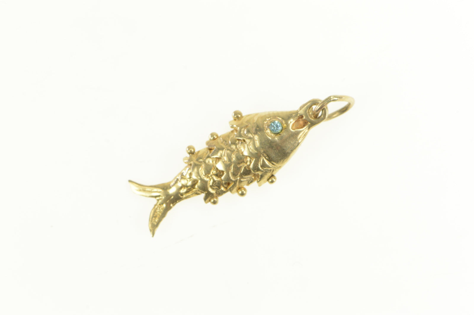 ·Item: 14K 3D Articulated Fish Sim. Blue Topaz Eye Charm/Pendant Yellow Gold