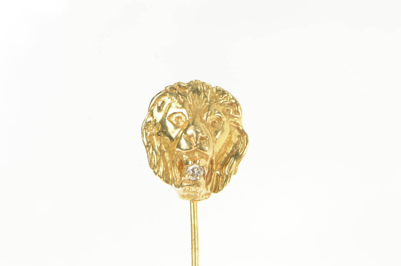 ·Item: 14K 3D Roaring Lion Head Diamond Mouth Stick Pin Yellow Gold