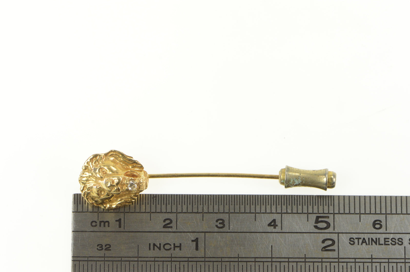14K 3D Roaring Lion Head Diamond Mouth Stick Pin Yellow Gold