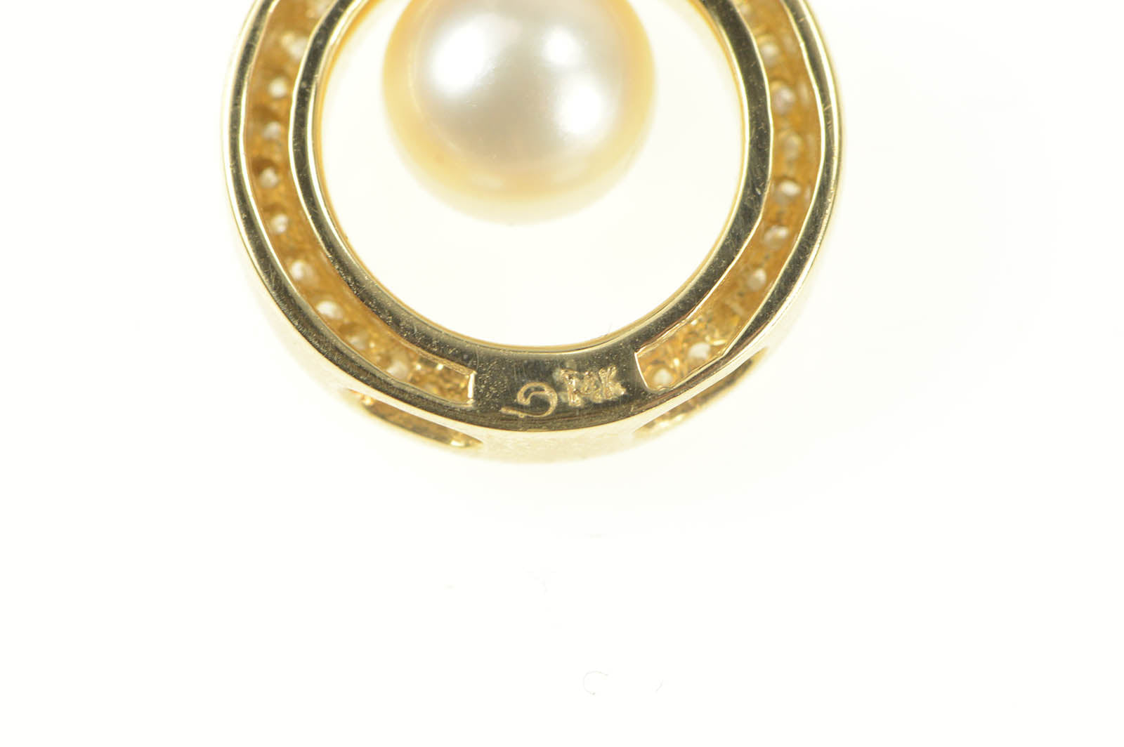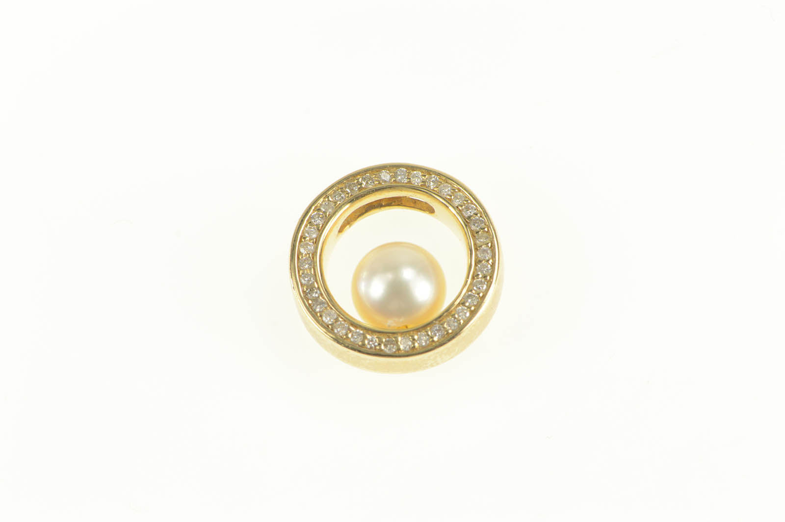·Item: 14K 7.5mm Pearl Diamond Circle Statement Pendant Yellow Gold