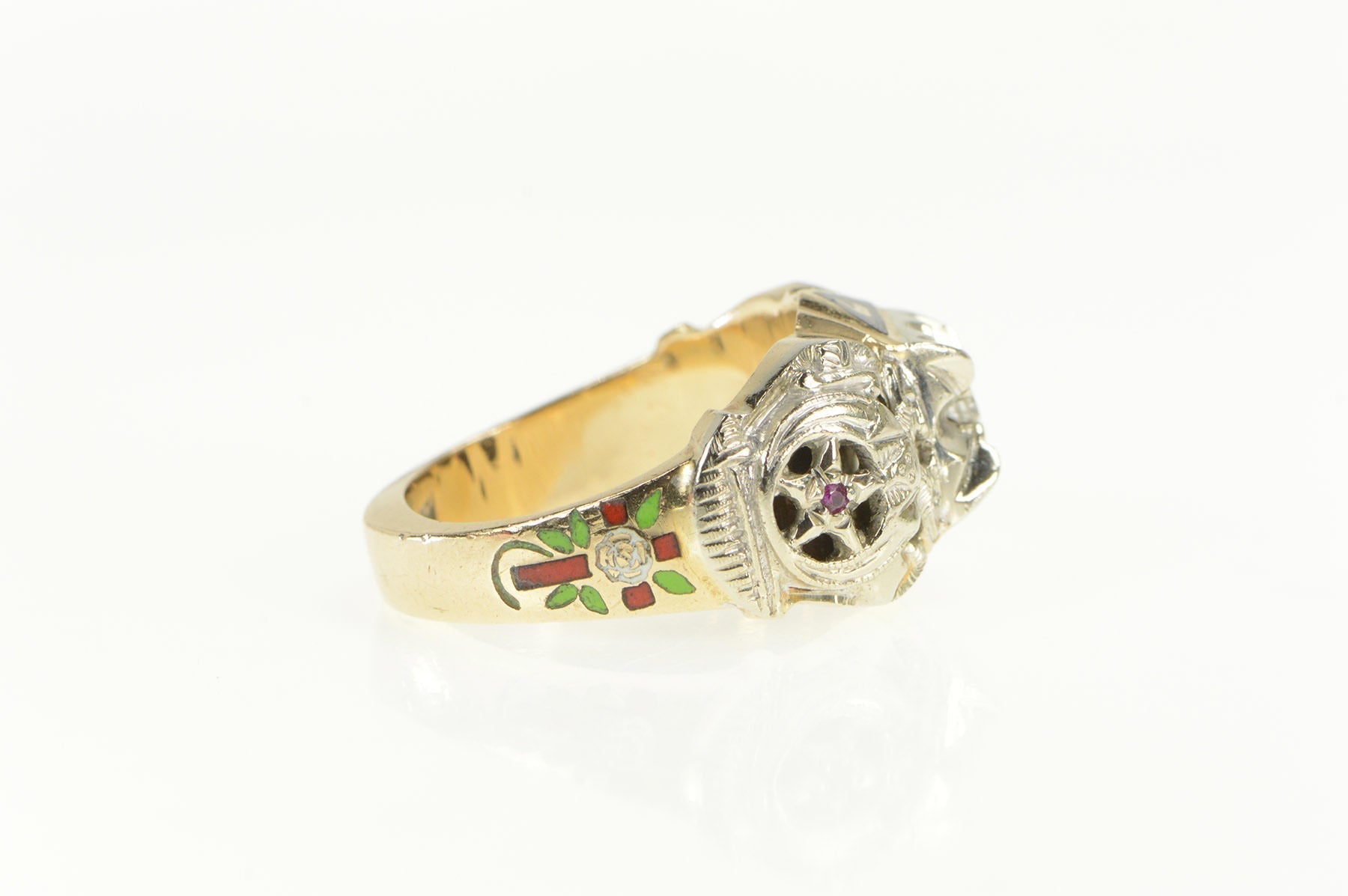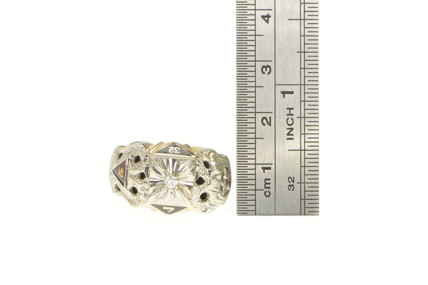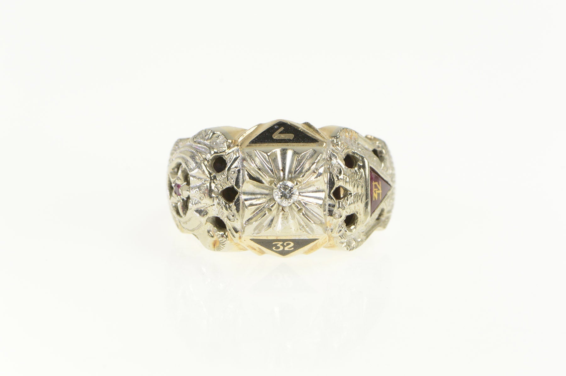 ·Item: 14K Art Deco Diamond Enamel Masonic Men;s Ring Size 10 Yellow Gold