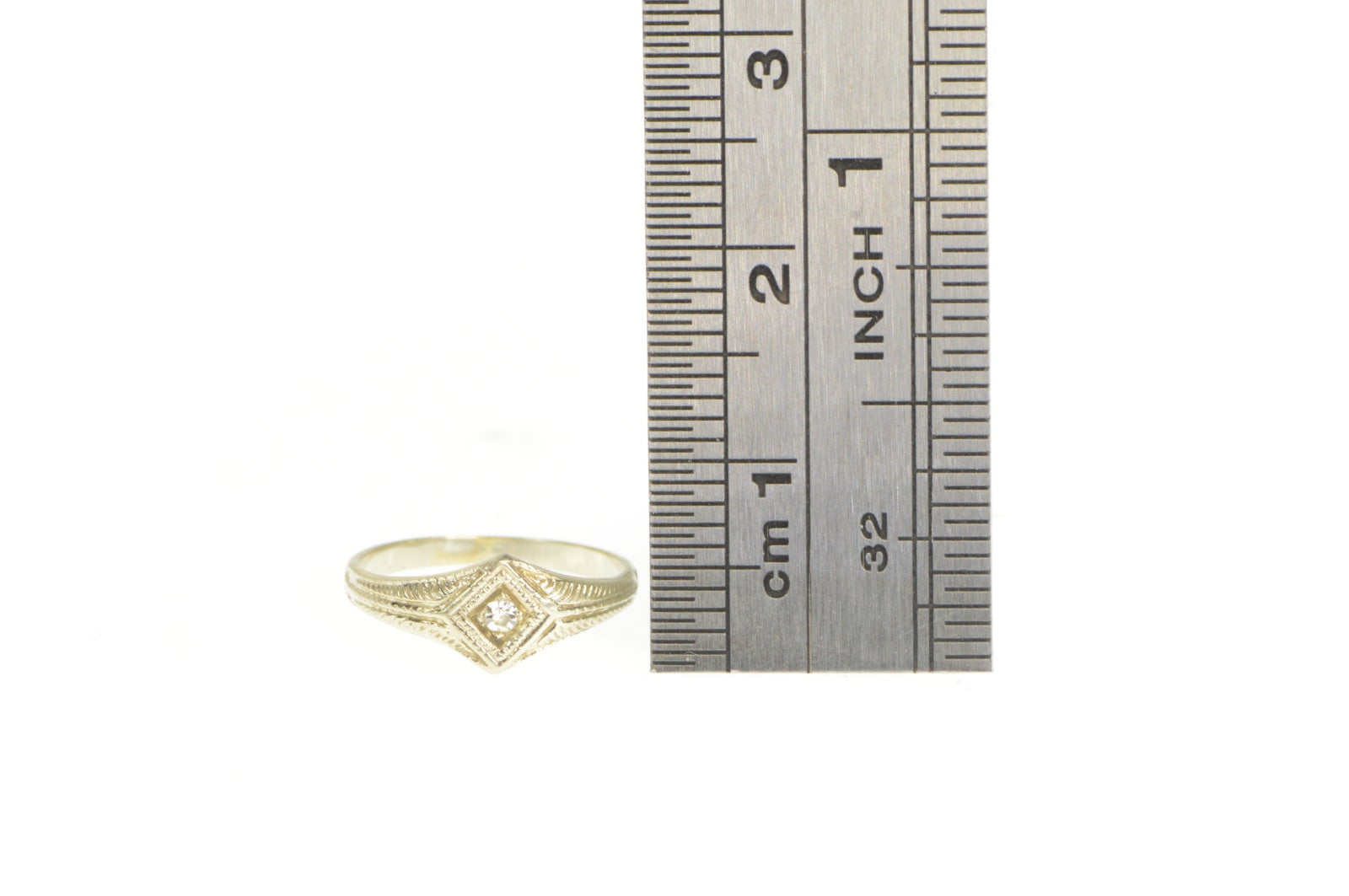 ·Item: 14K Art Deco Diamond Inset Child's Baby Ring Size 0.75 White Gold