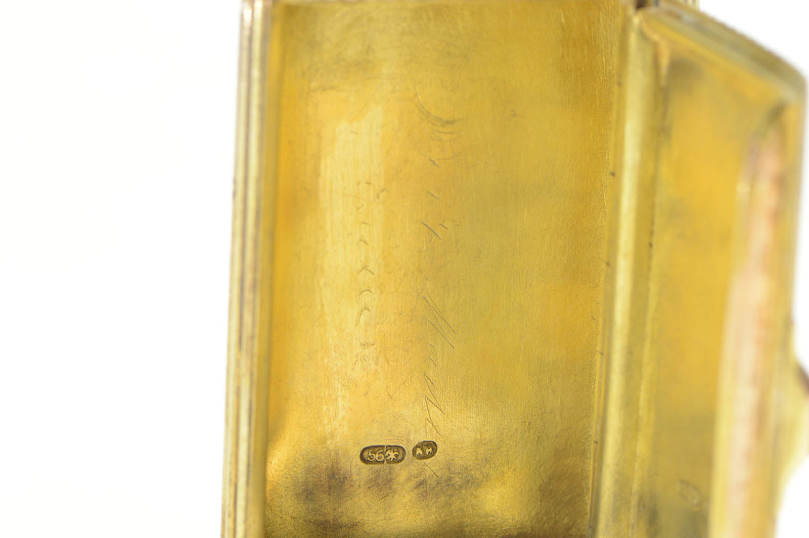 ·Item: 14K Art Deco Syn. Ruby Grooved Pattern Pill Trinket Box Yellow Gold