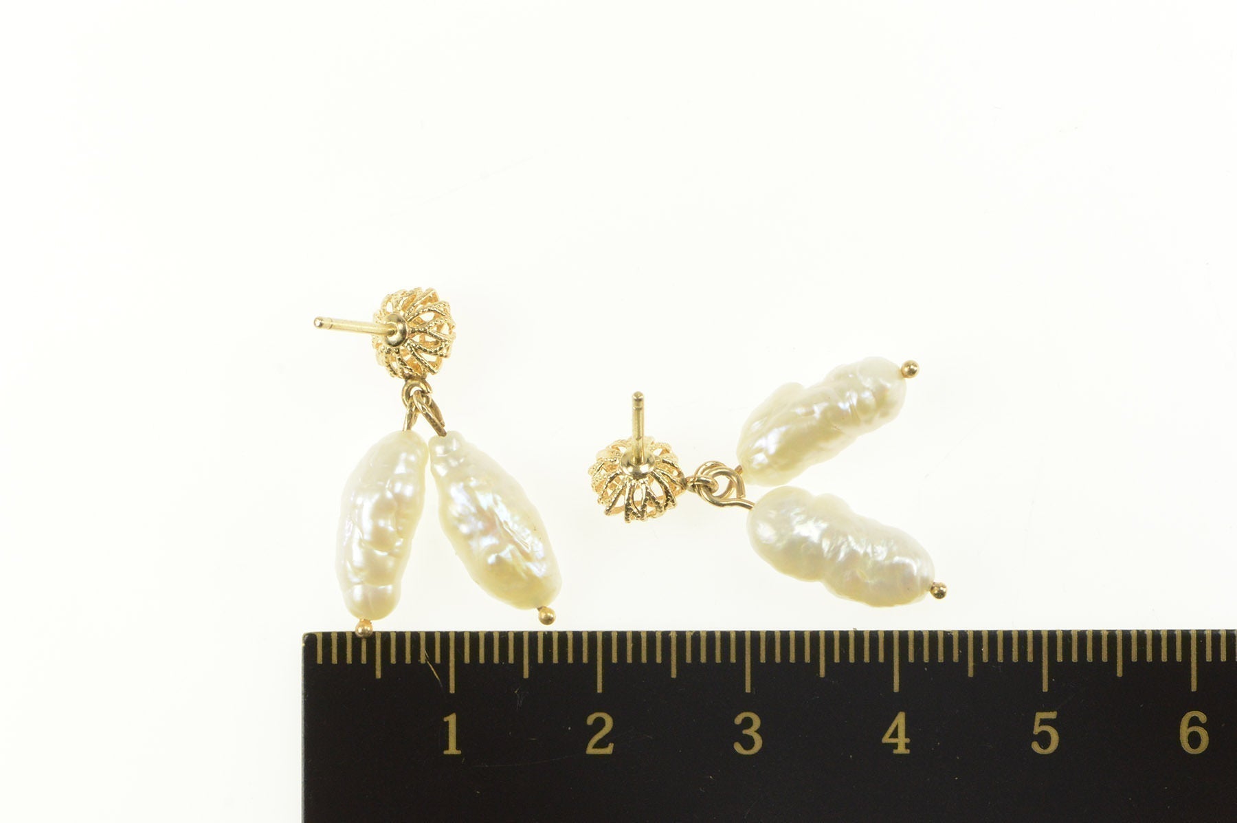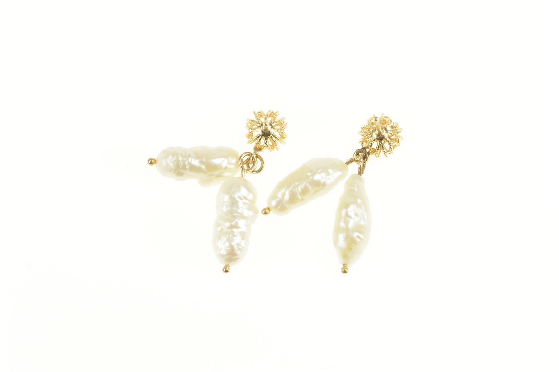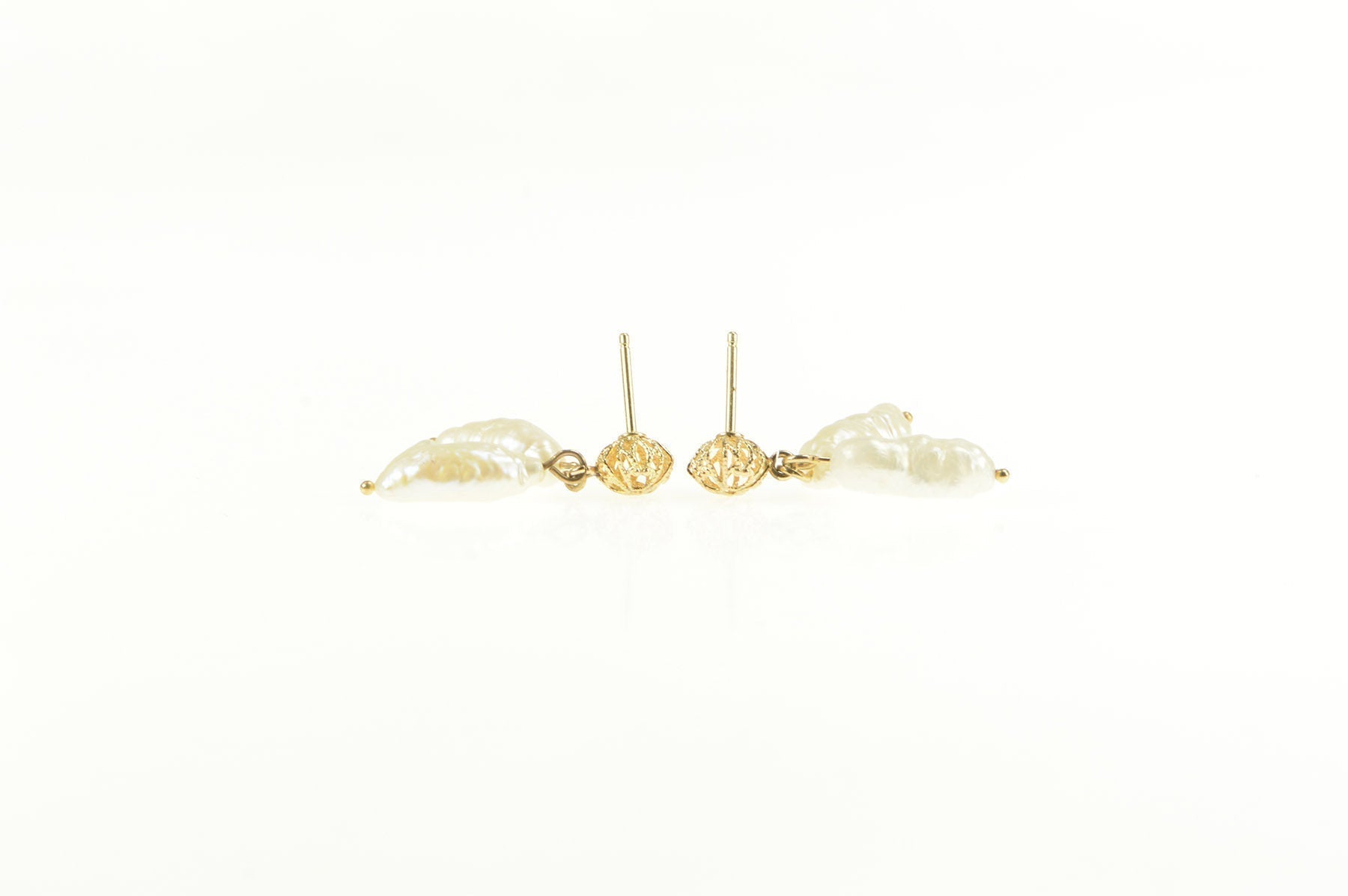 ·Item: 14K Baroque Pearl Dangle Filigree Ball Stud Earrings Yellow Gold