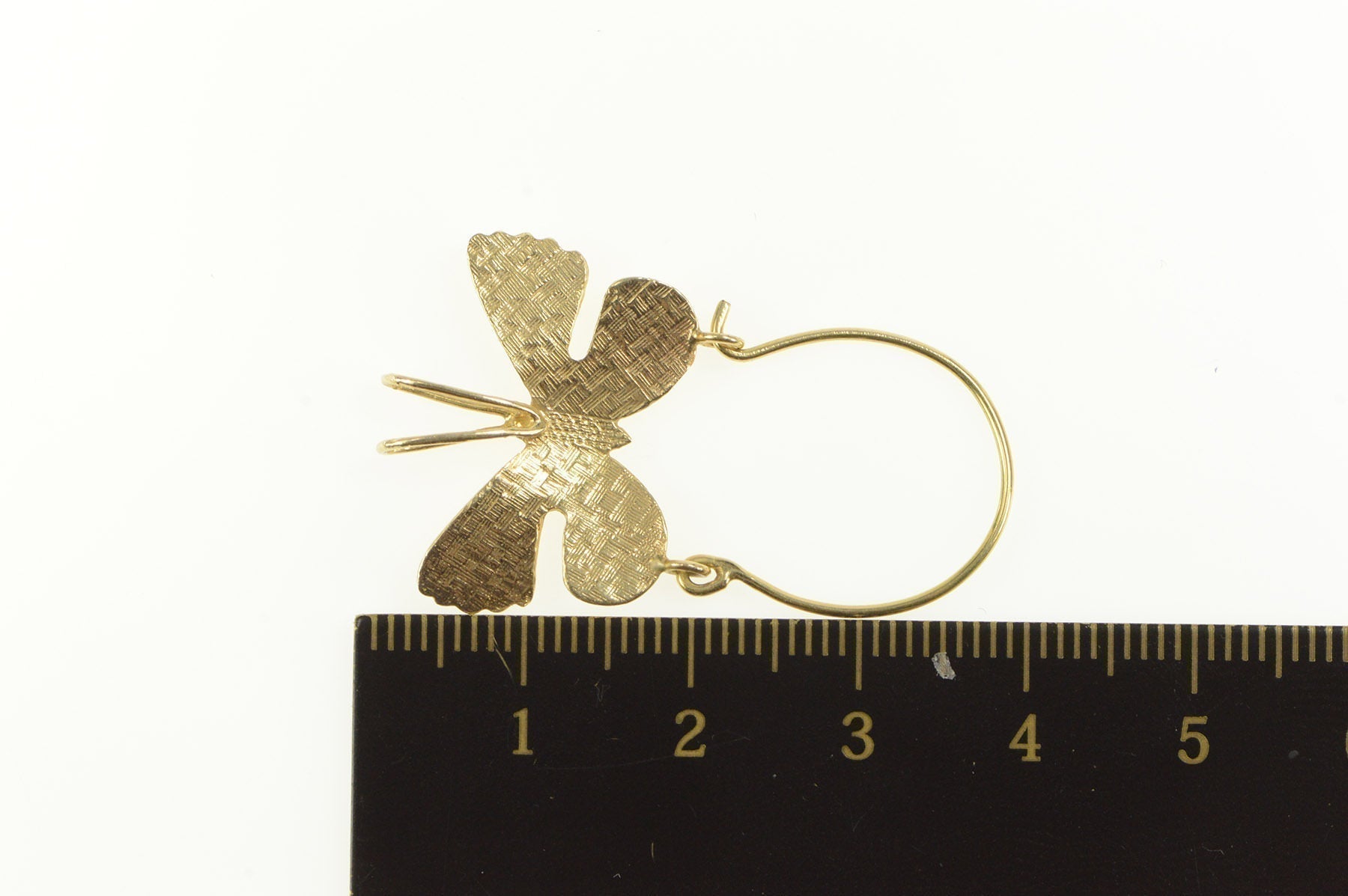·Item: 14K Checkered Pattern Butterfly Charm Holder Loop Pendant Yellow Gold