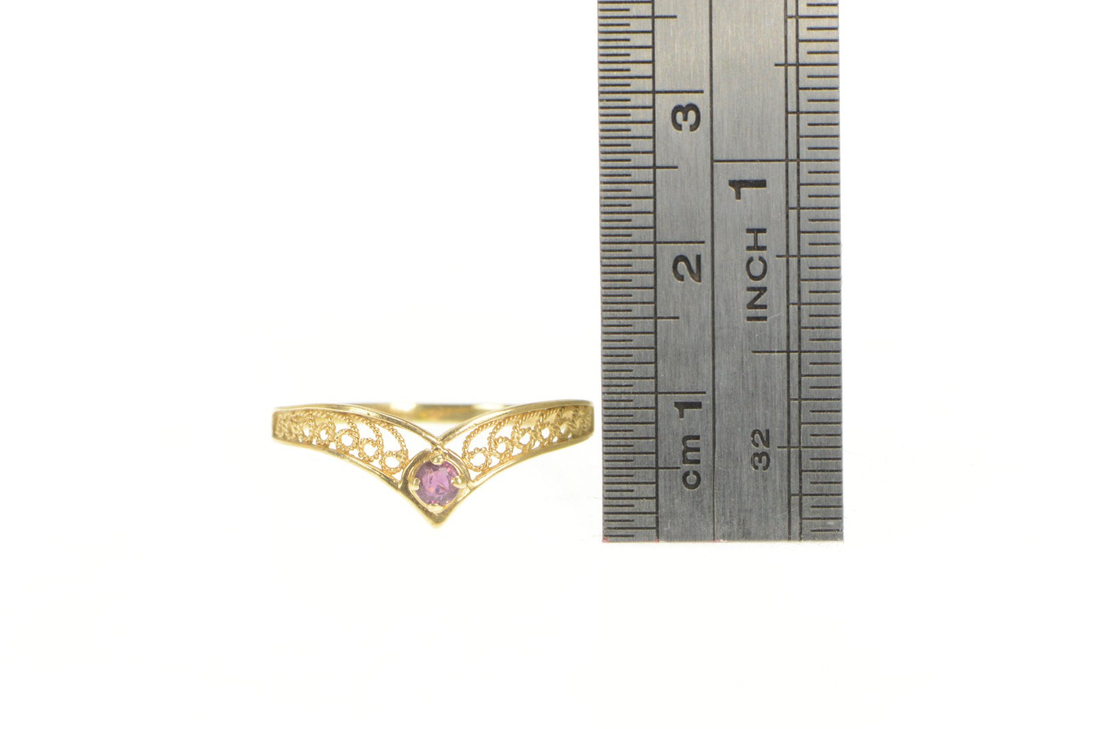 ·Item: 14K Chevron Ruby Filigree Curved Statement Ring Size 10 Yellow Gold