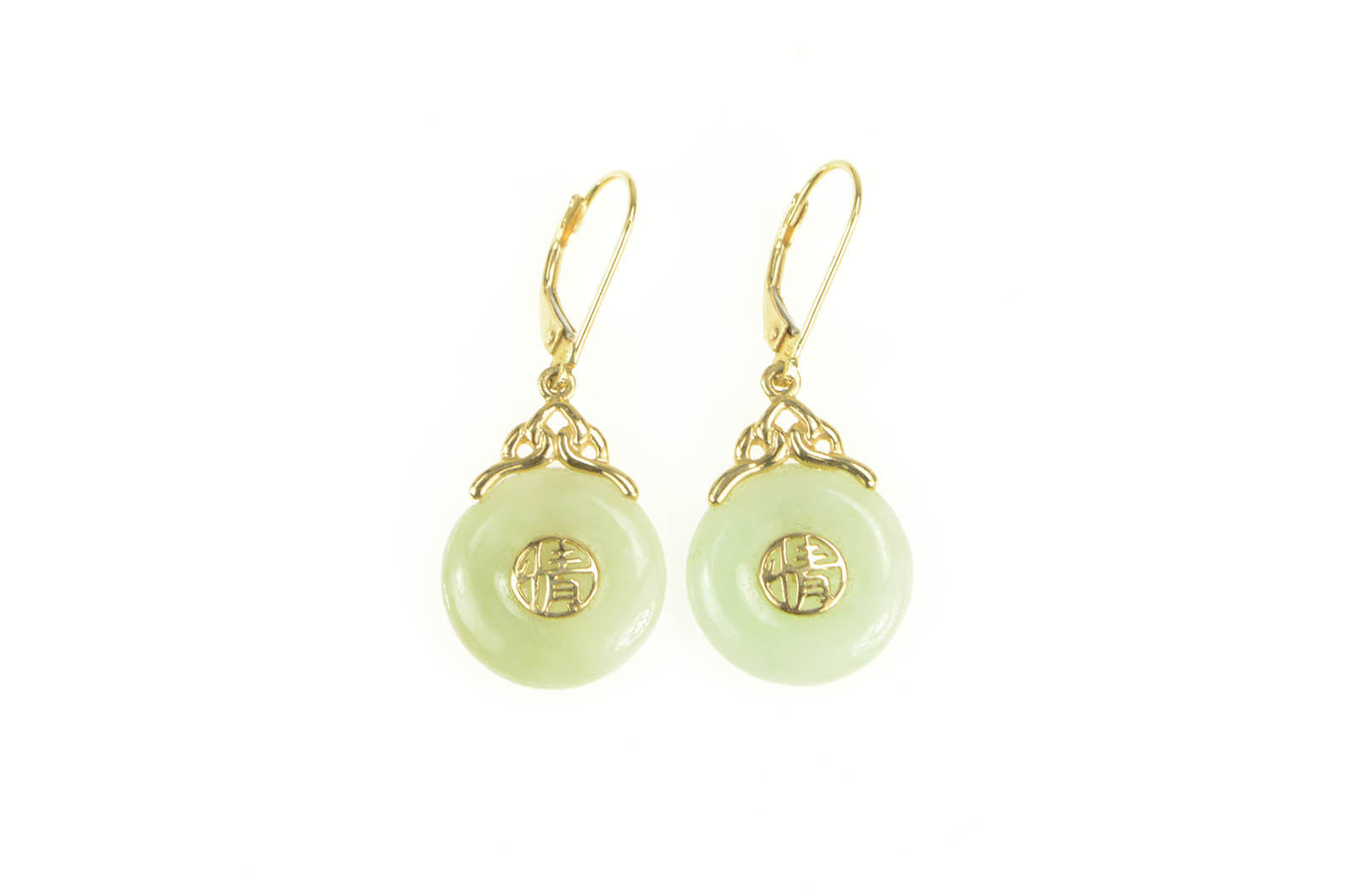 ·Item: 14K Chinese Jade Circle Bi Symbol Statement Earrings Yellow Gold
