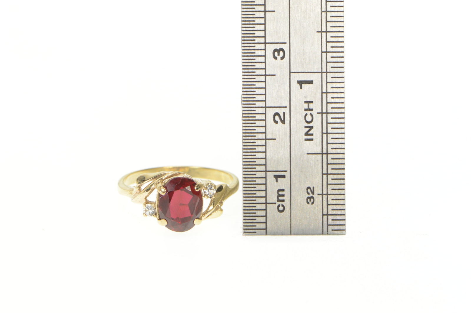 ·Item: 14K Classic Vintage Oval Garnet Diamond Accent Ring Size 7.25 Yellow Gold