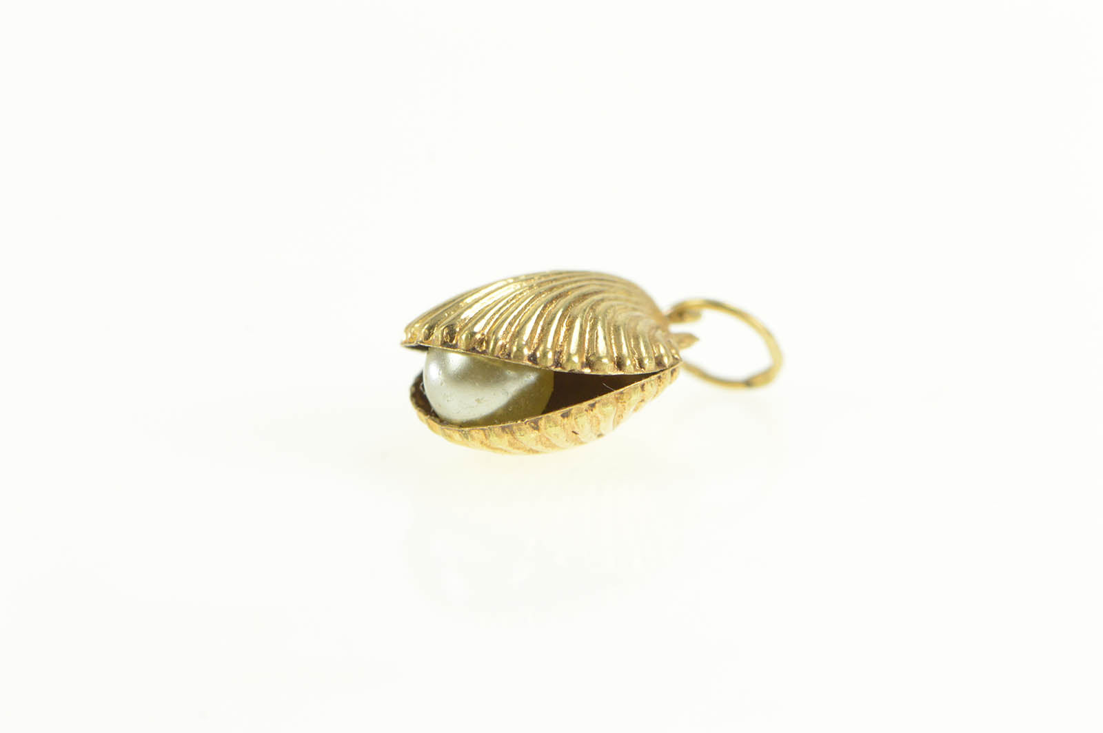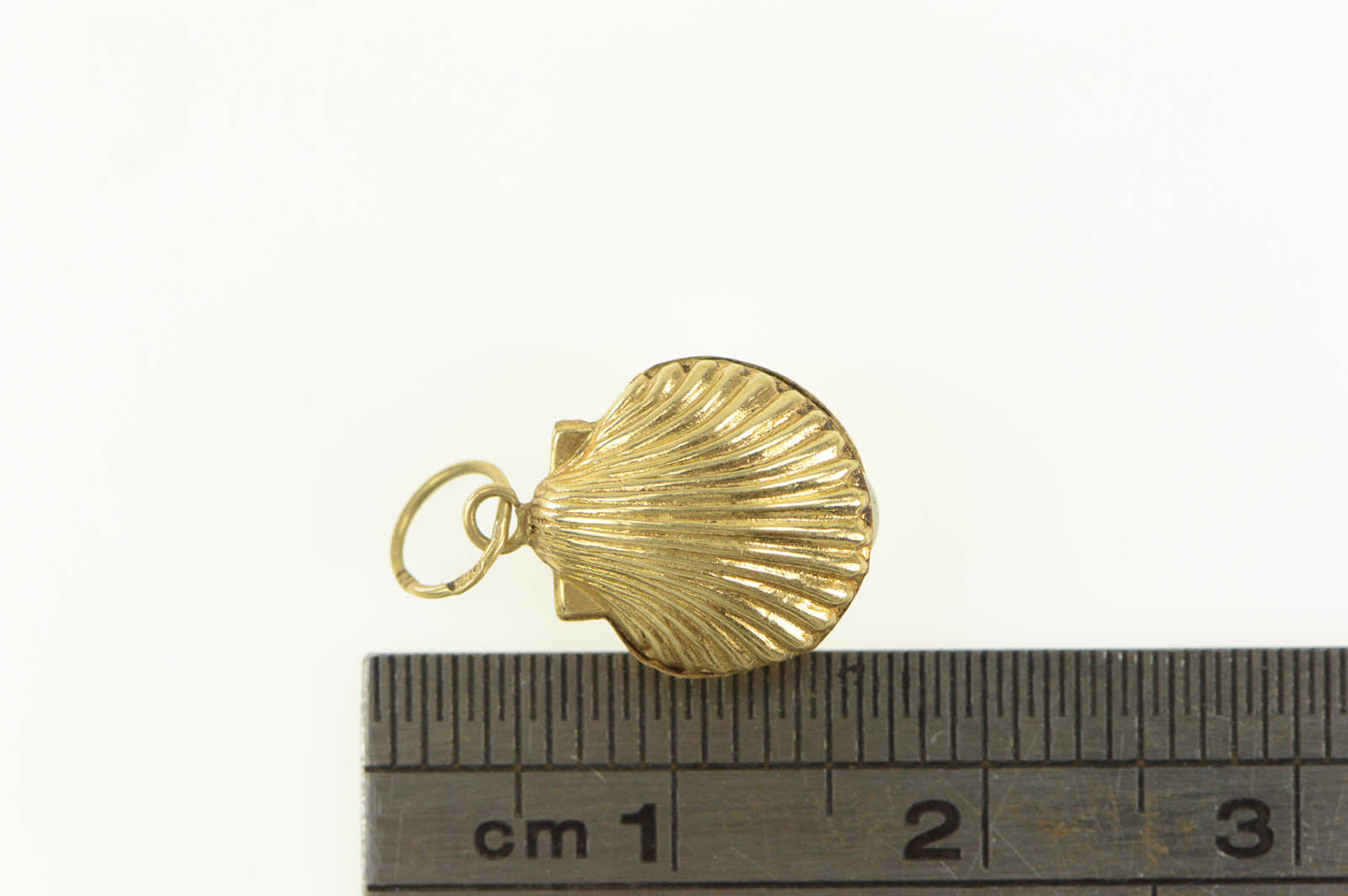 ·Item: 14K Dark Grey Pearl Scallop Sea Shell Ocean Motif Charm/Pendant Yellow Gold