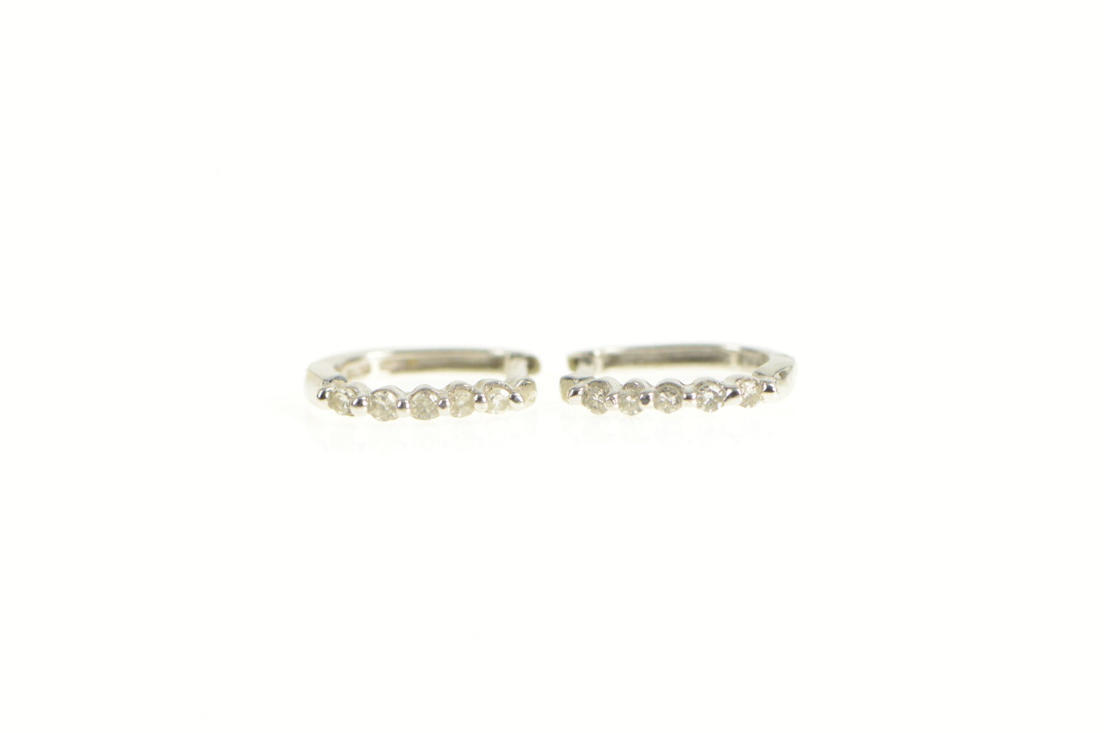 14K Diamond 11.3mm Huggies Hoop Statement Earrings White Gold