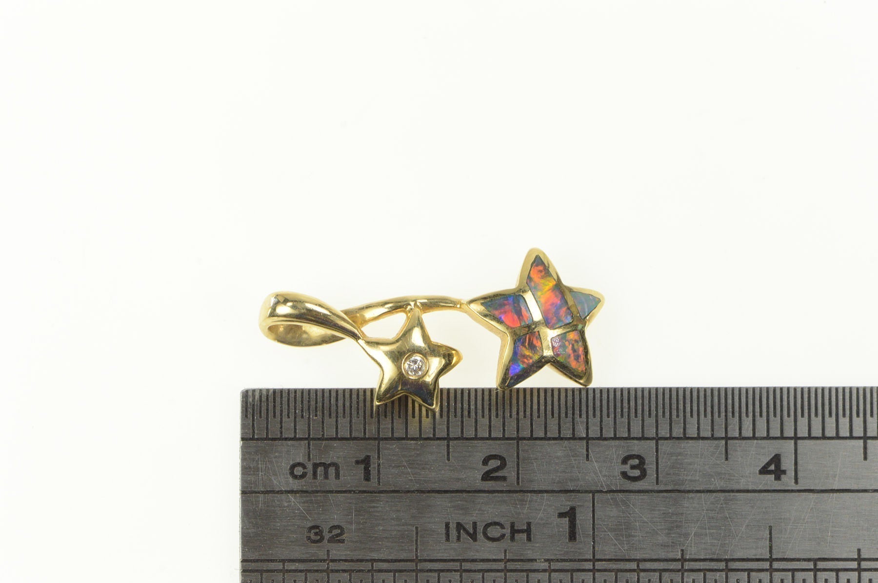 ·Item: 14K Diamond Black Opal Inlay Star Loop Statement Pendant Yellow Gold