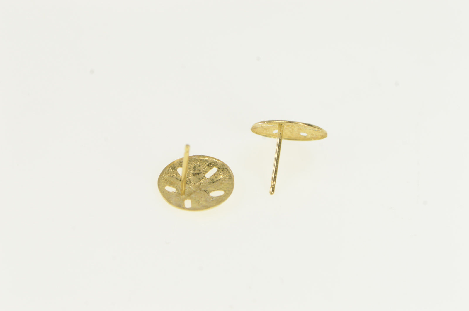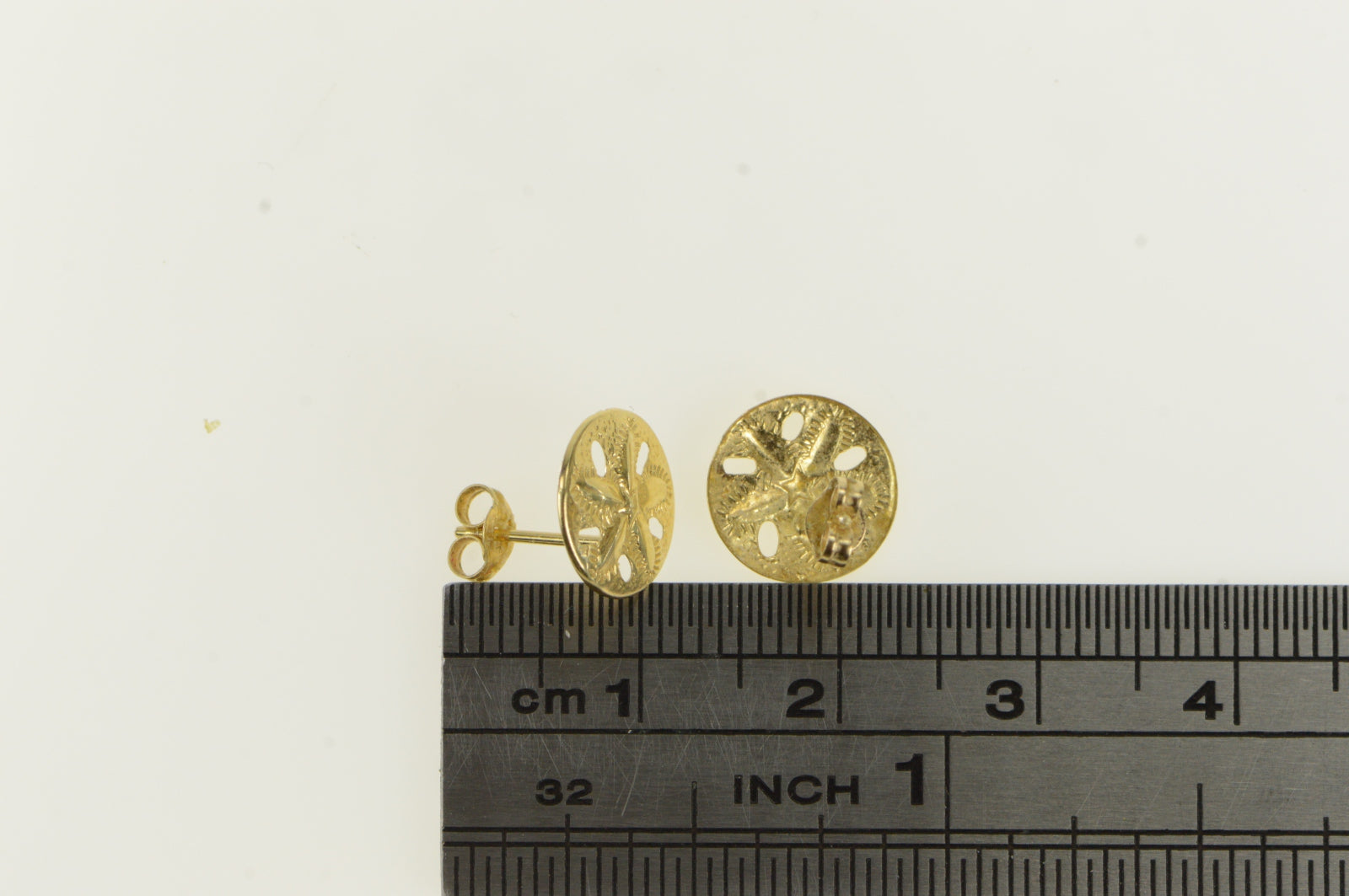 ·Item: 14K Diamond Cut Sand Dollar Sea Shell Stud Earrings Yellow Gold