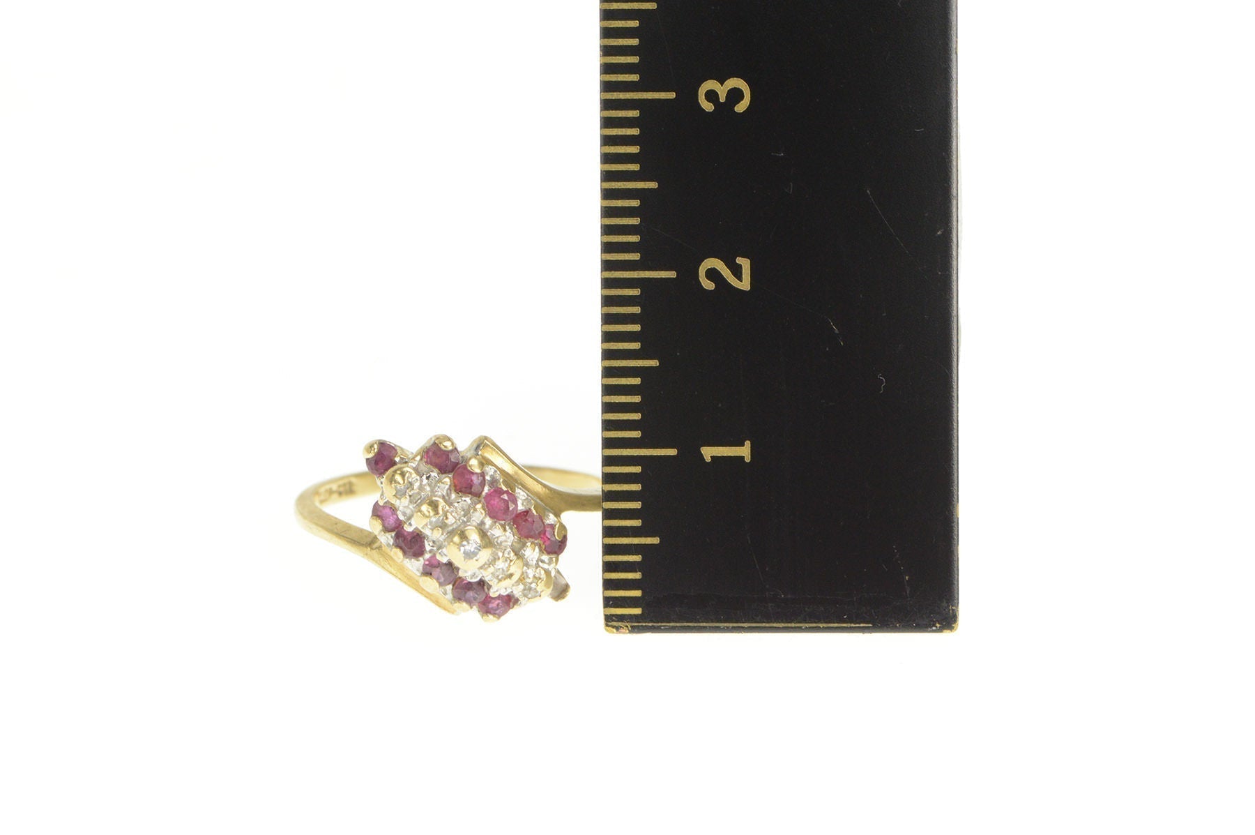 ·Item: 14K Diamond Ruby Cluster Oval Bypass Statement Ring Size 6 Yellow Gold