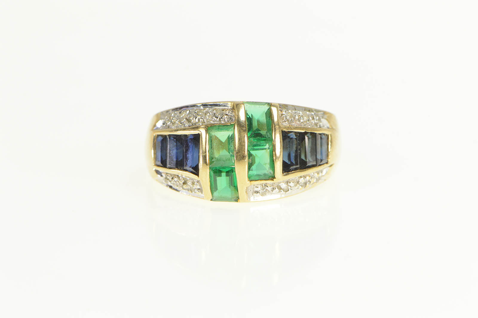 ·Item: 14K Emerald Cut Syn. Emerald & Sapphire Diamond Ring Size 7.75 Yellow Gold