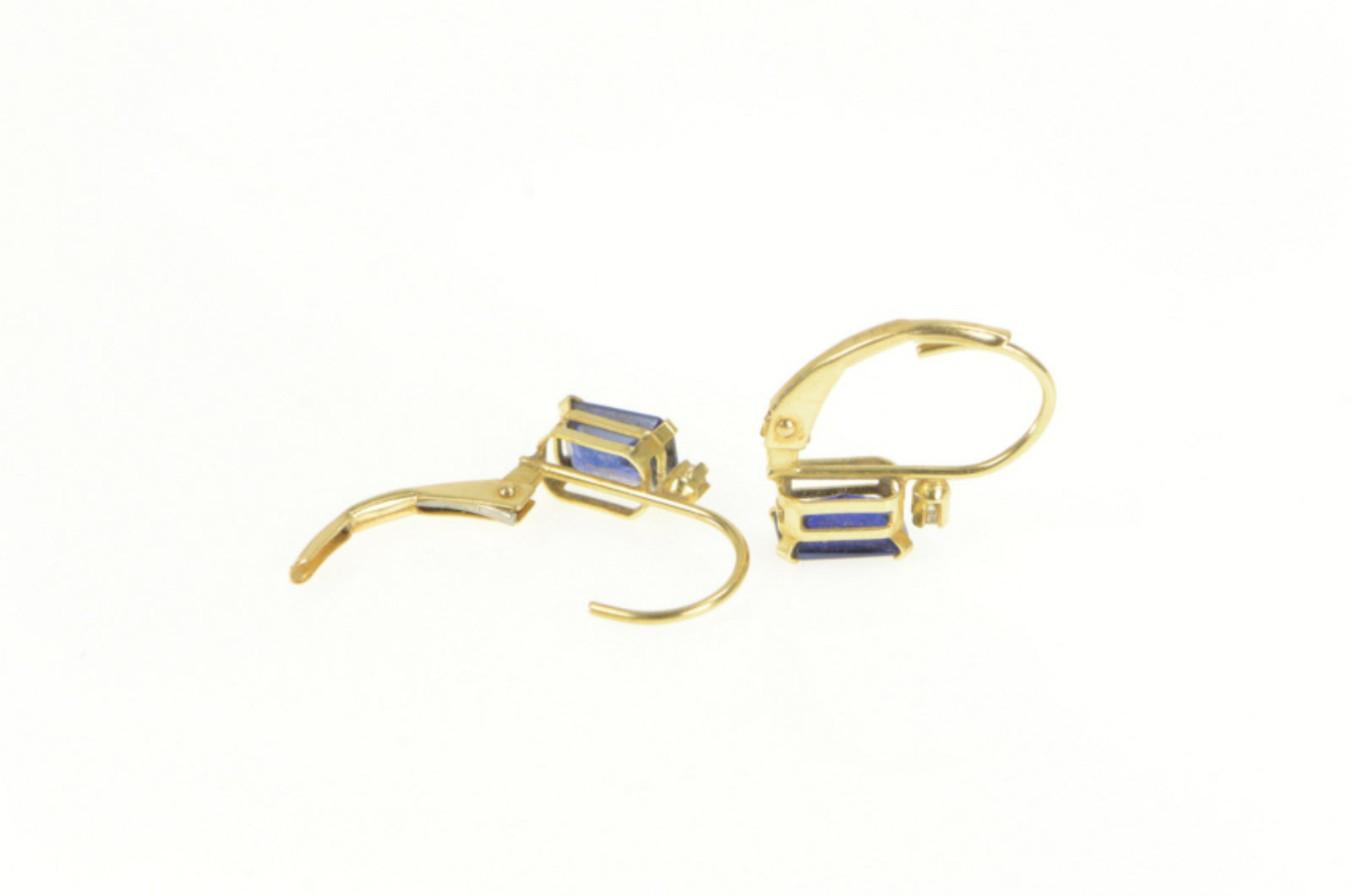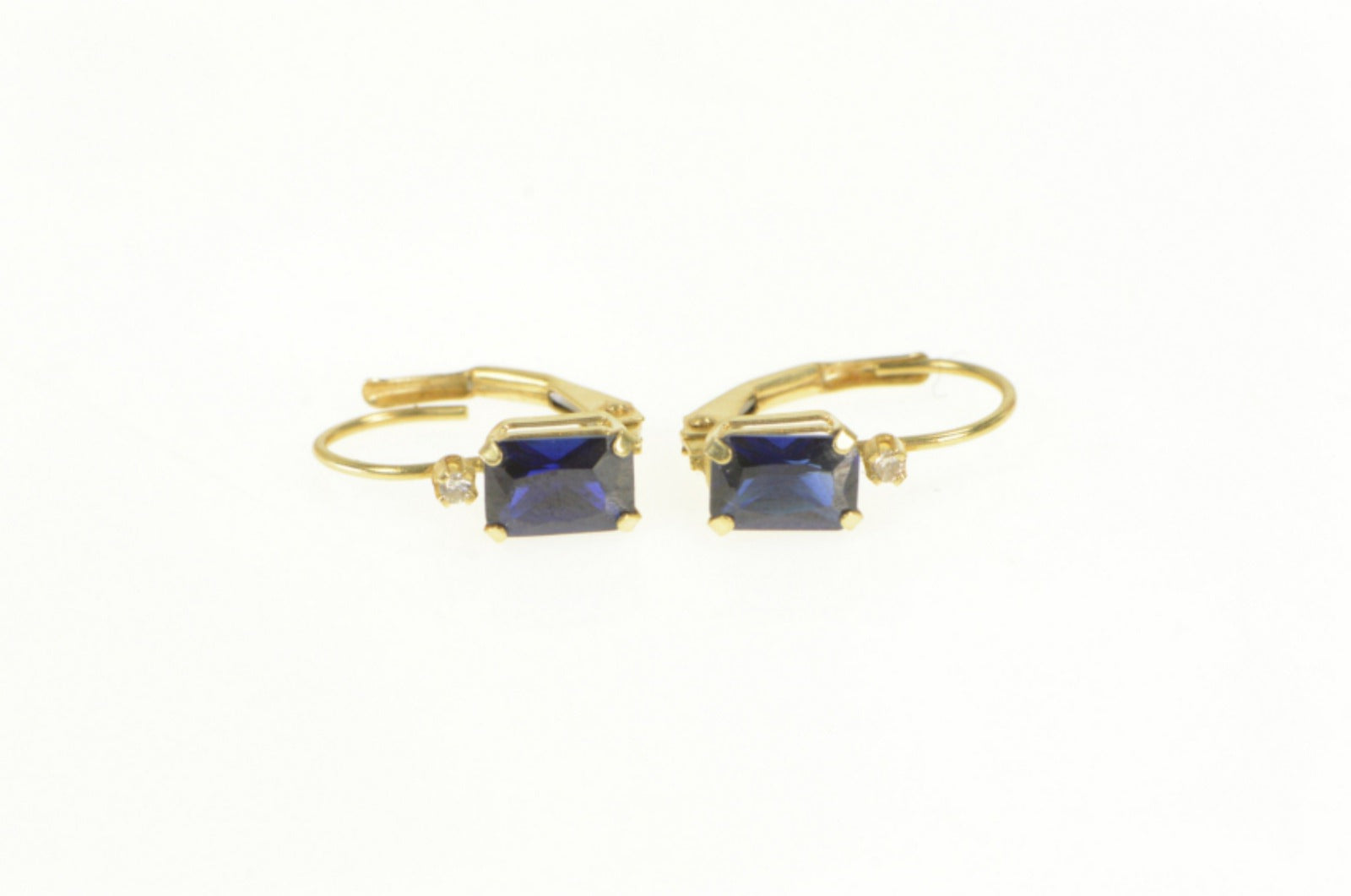 ·Item: 14K Emerald Cut Syn. Sapphire CZ Accent Dangle Earrings Yellow Gold