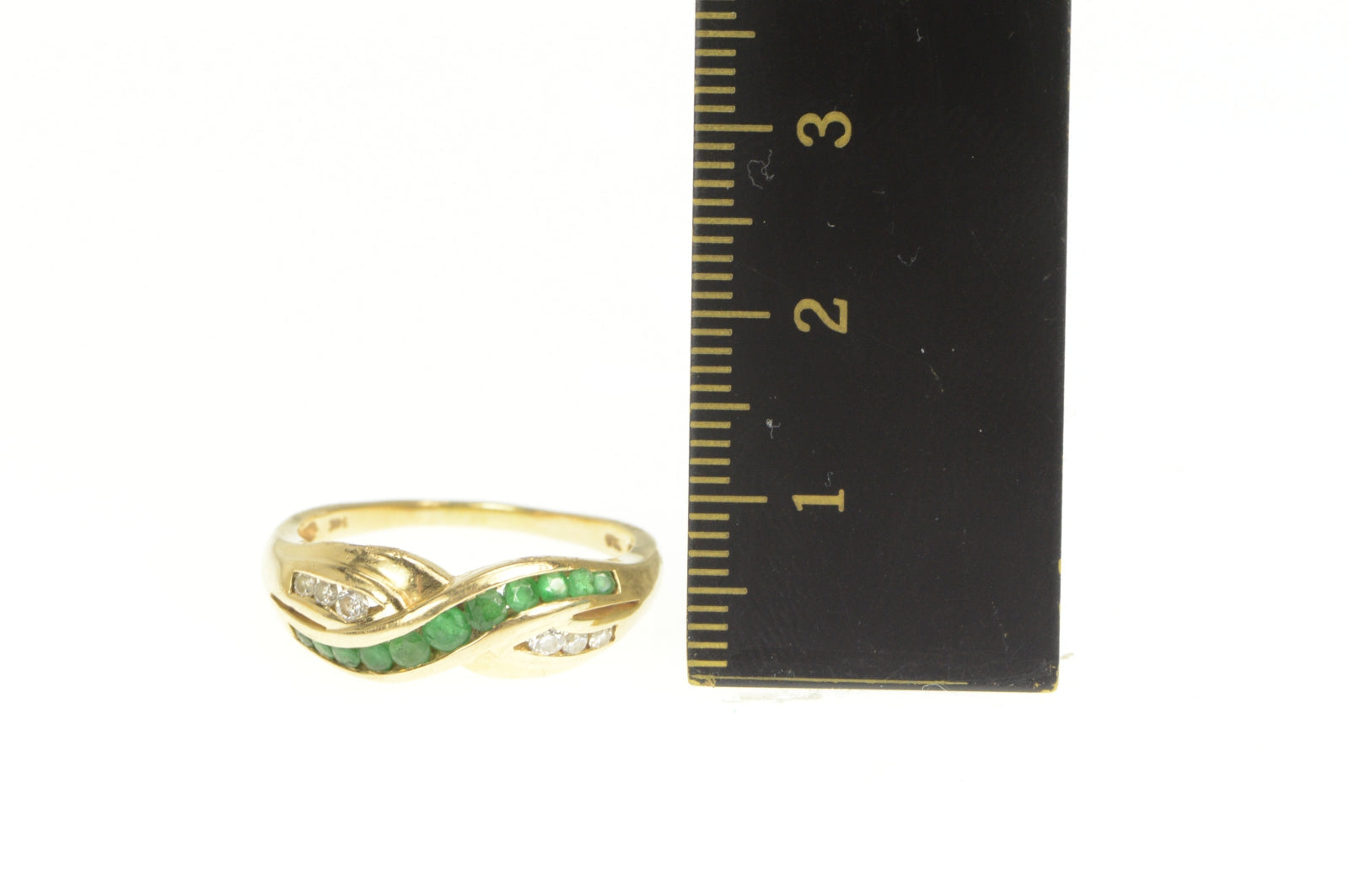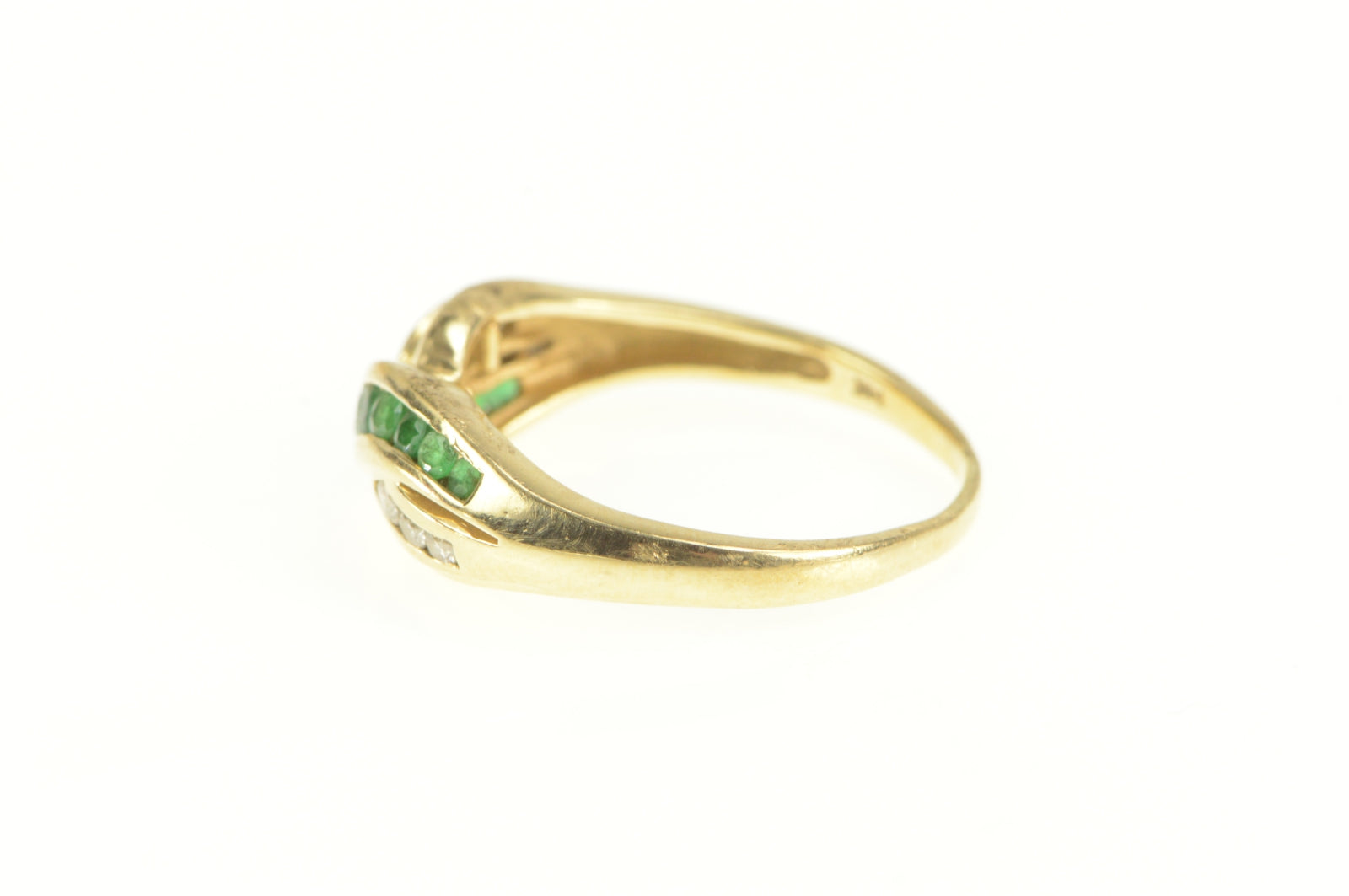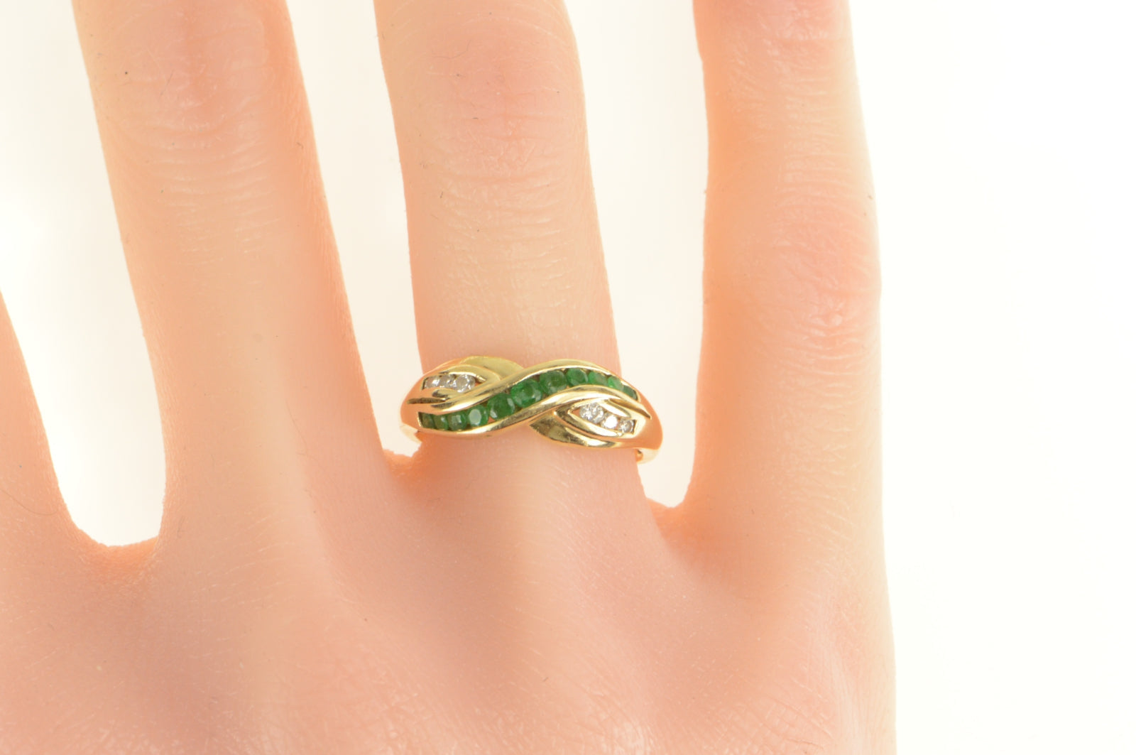 ·Item: 14K Emerald Diamond Wavy Criss Cross X Band Ring Size 8.25 Yellow Gold