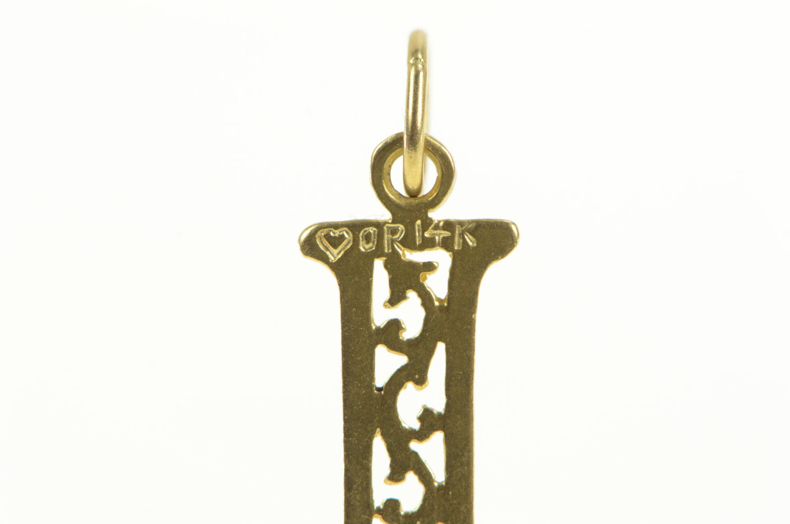 ·Item: 14K Filigree Letter I Initial Monogram Name Charm/Pendant Yellow Gold