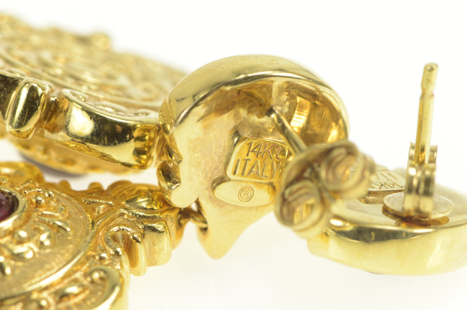 14K Garnet Elaborate Scroll Rococo Dangle Earrings Yellow Gold