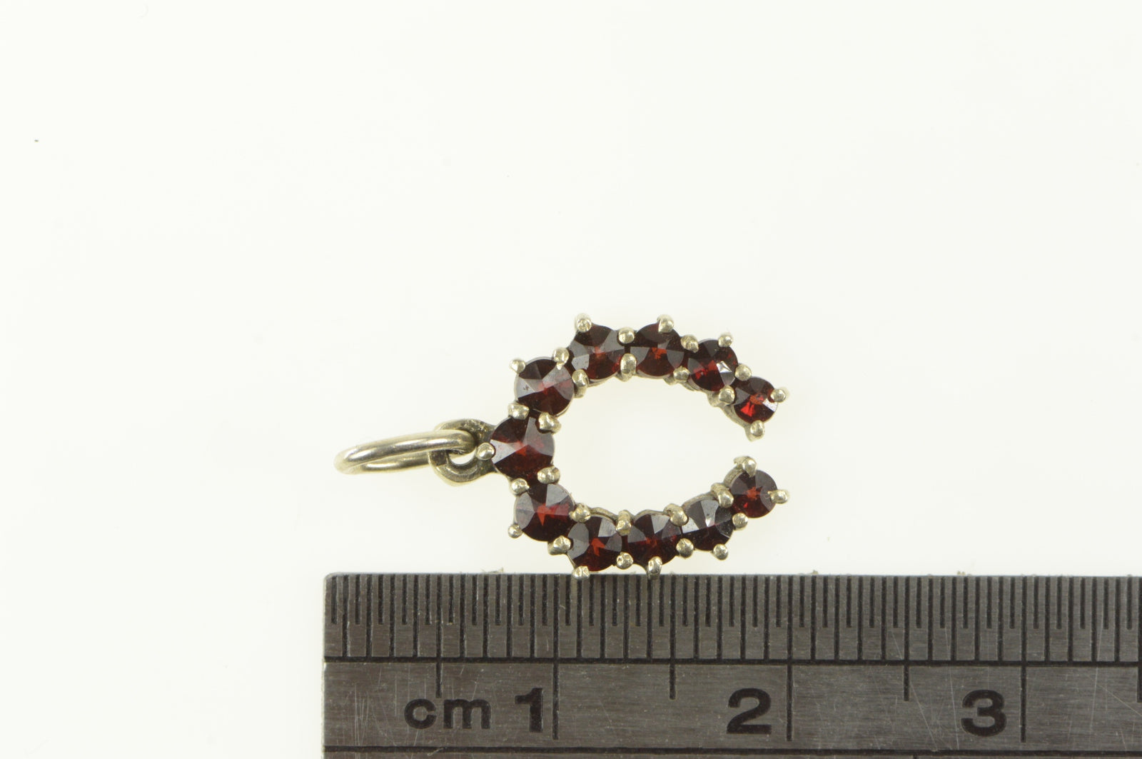 14K Garnet Horse Shoe Good Luck Lucky Charm/Pendant White Gold