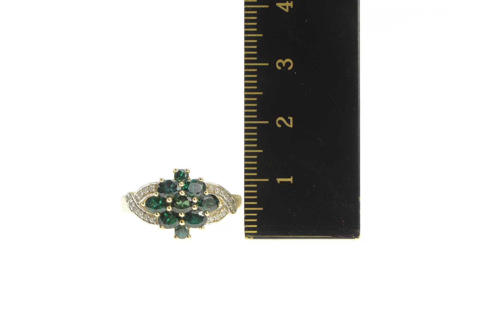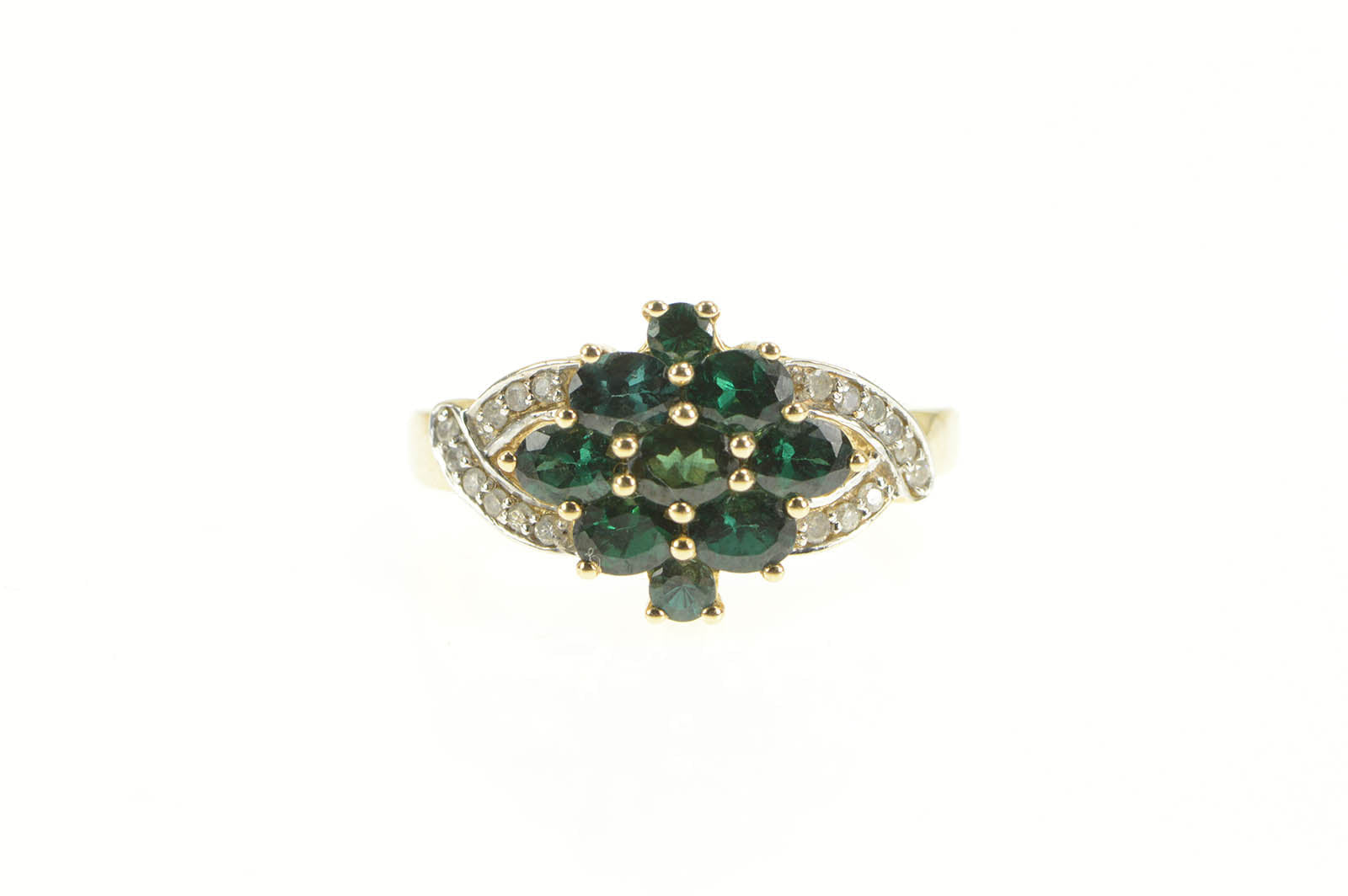 ·Item: 14K Green Tourmaline Cluster Diamond Statement Ring Size 7.25 Yellow Gold