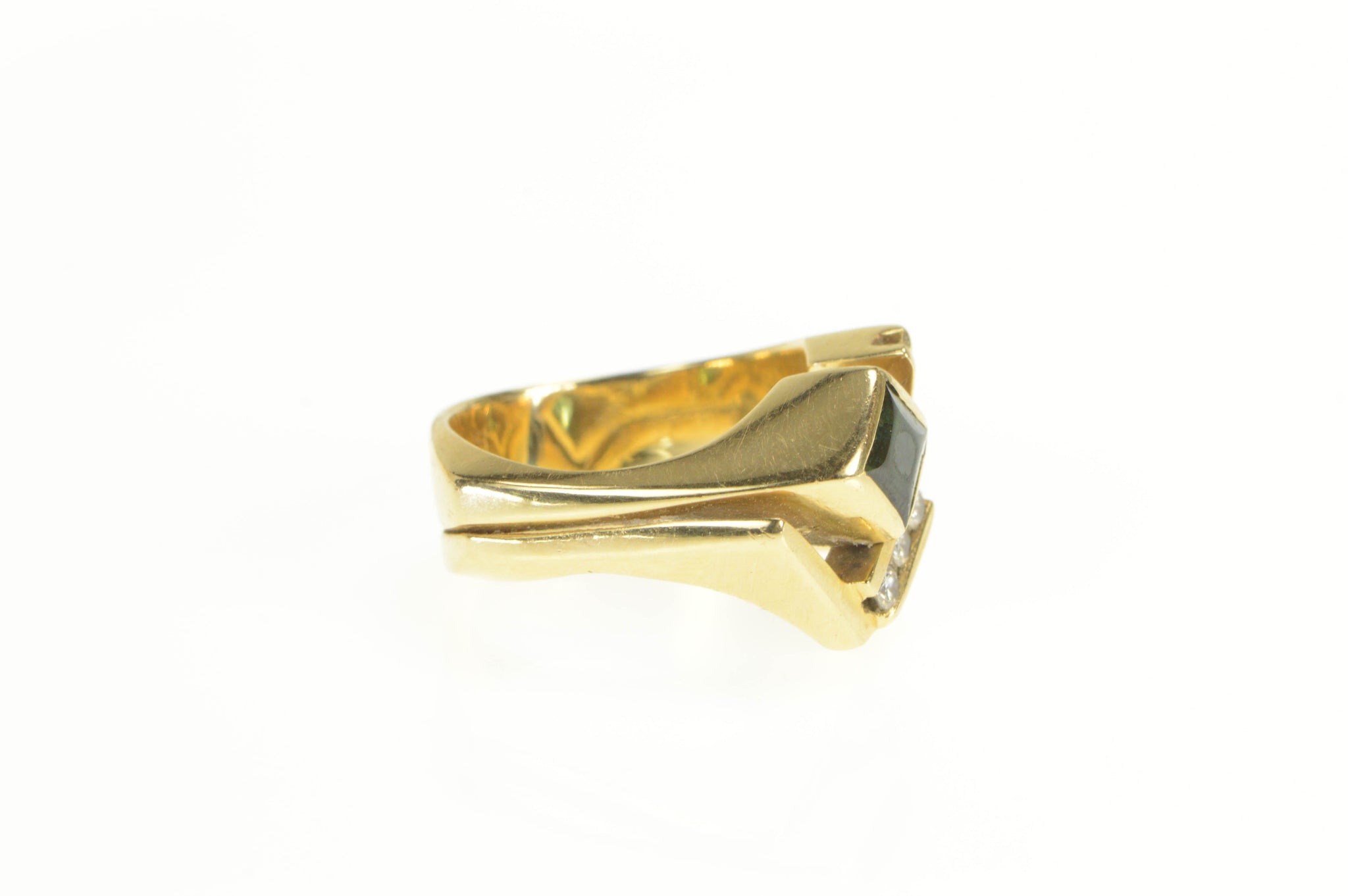 ·Item: 14K Green Tourmaline Diamond Squared Geometric Ring Size 5.5 Yellow Gold