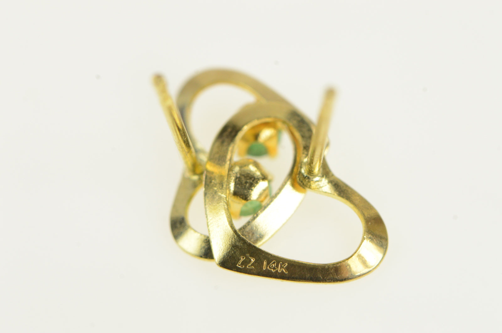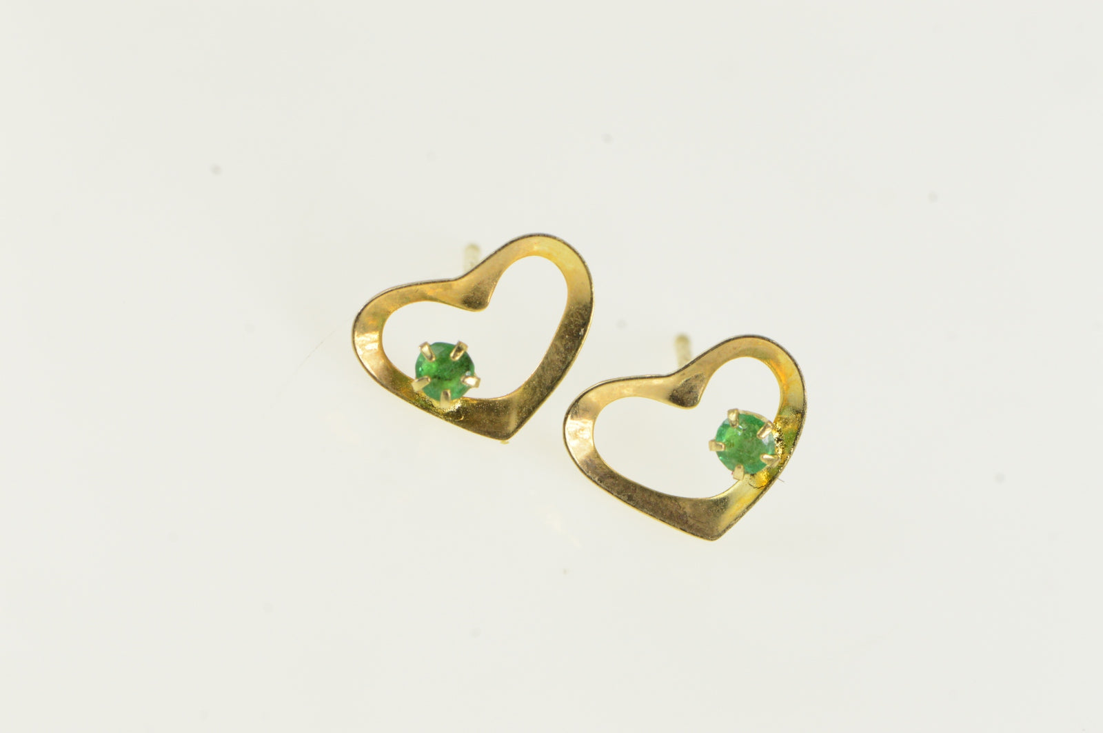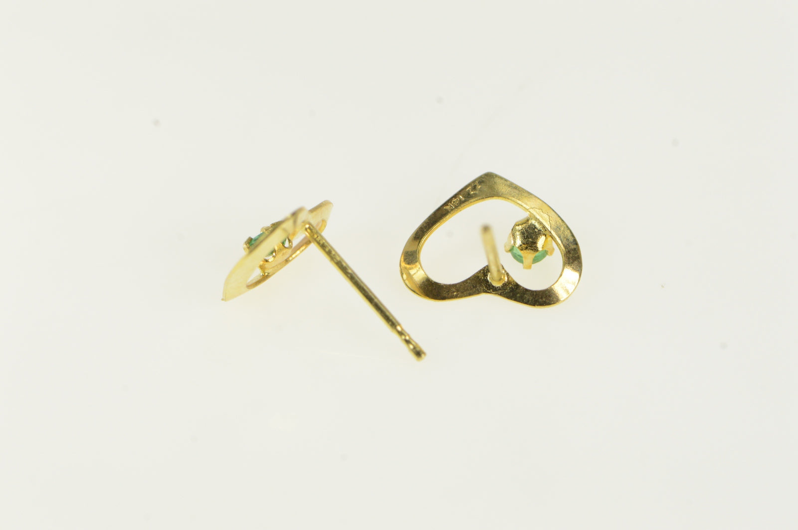 ·Item: 14K Heart Love Symbol Emerald Accent Stud Earrings Yellow Gold