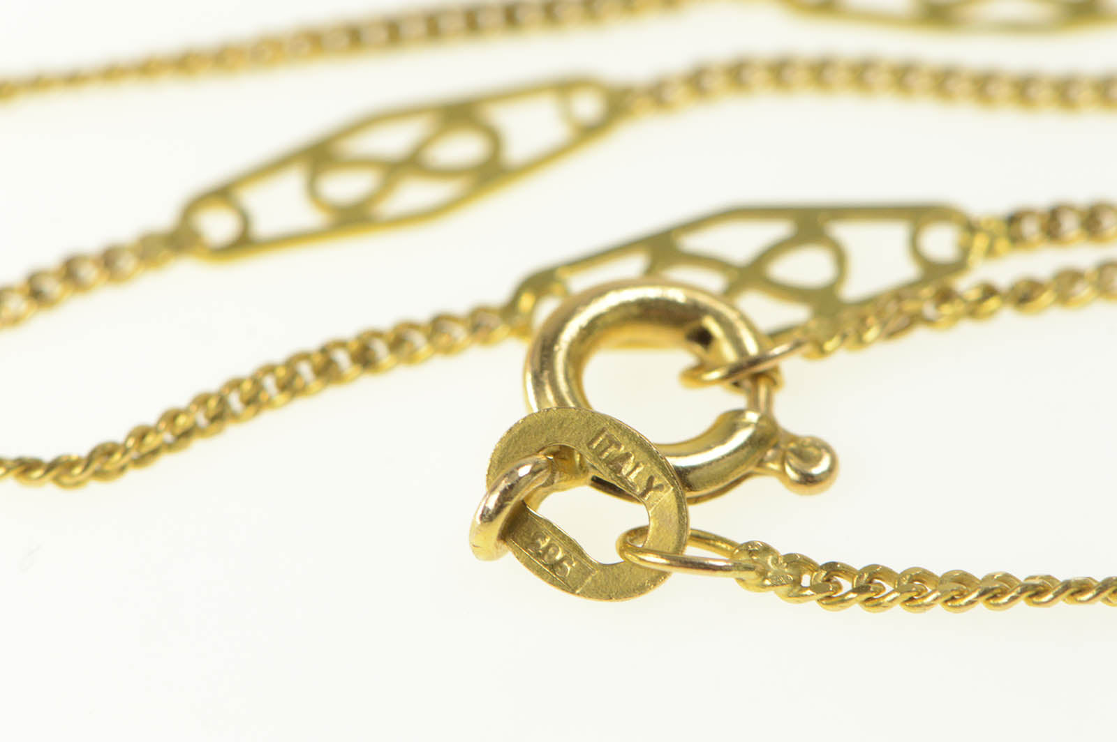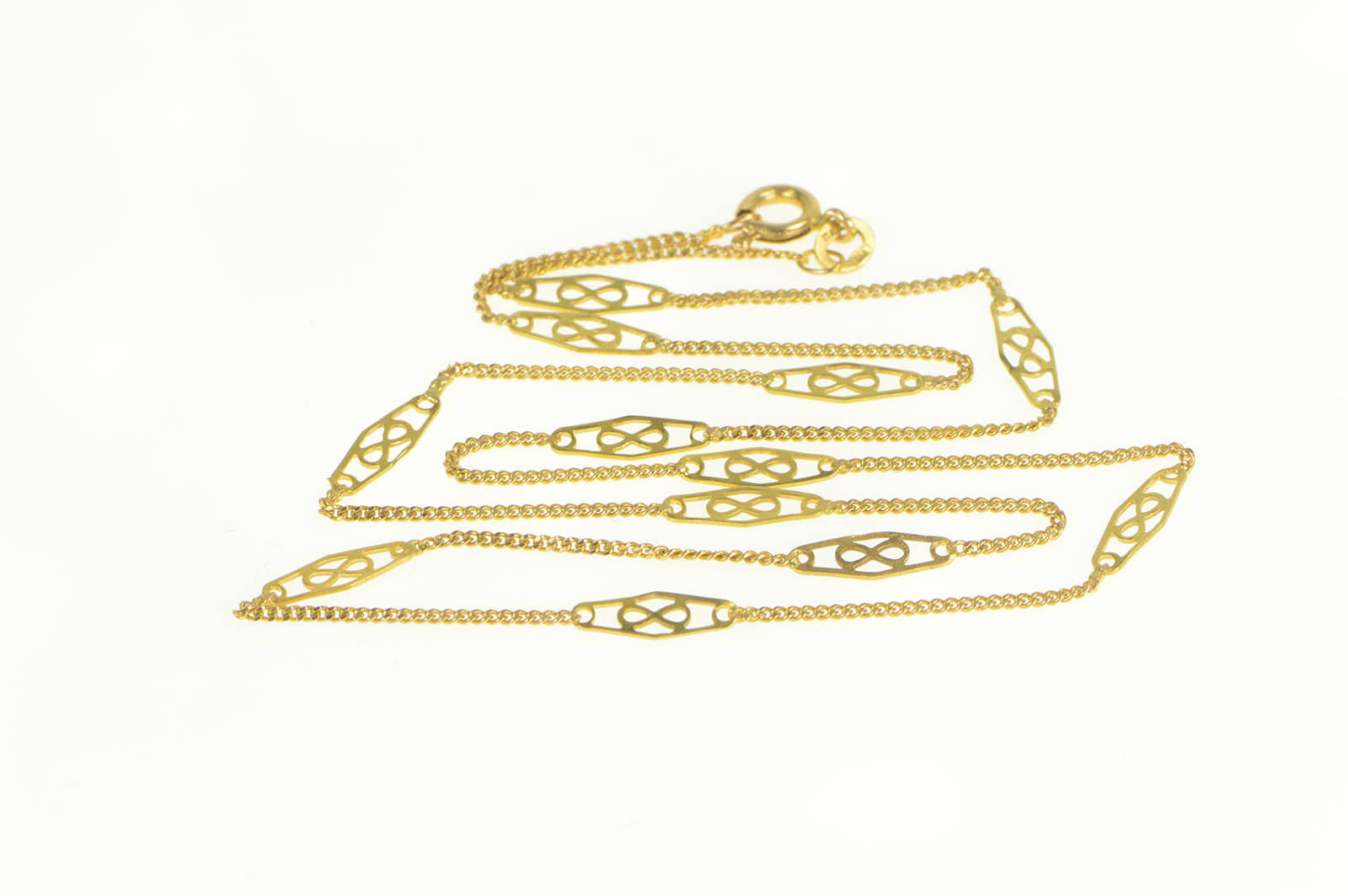 ·Item: 14K Infinity Filigree Link Curb Chain Link Necklace 18.25" Yellow Gold