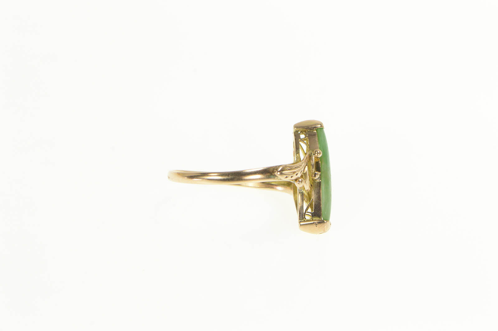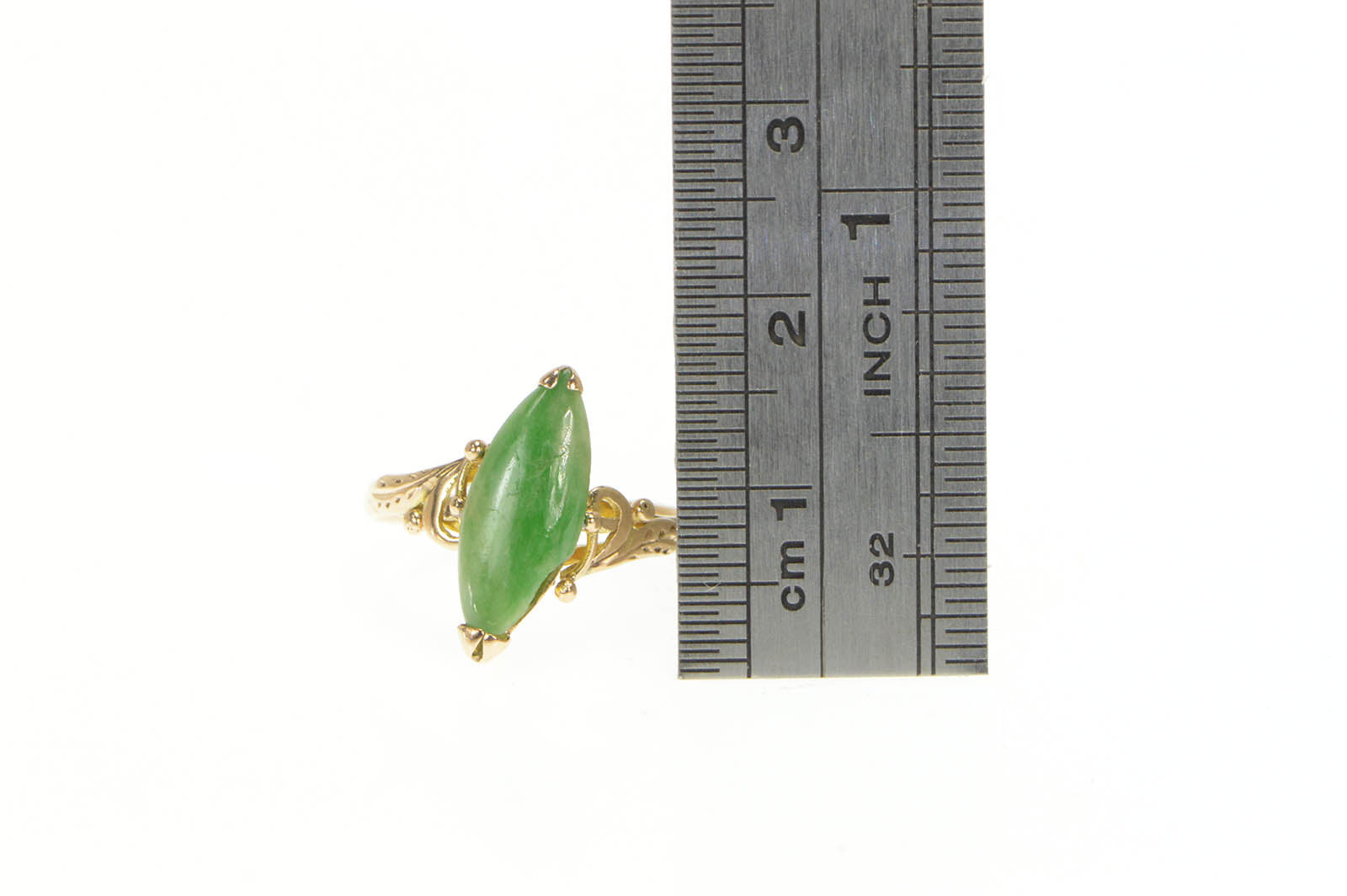 ·Item: 14K Marquise Jade Cabochon Retro Swirl Accent Ring Size 6.25 Yellow Gold