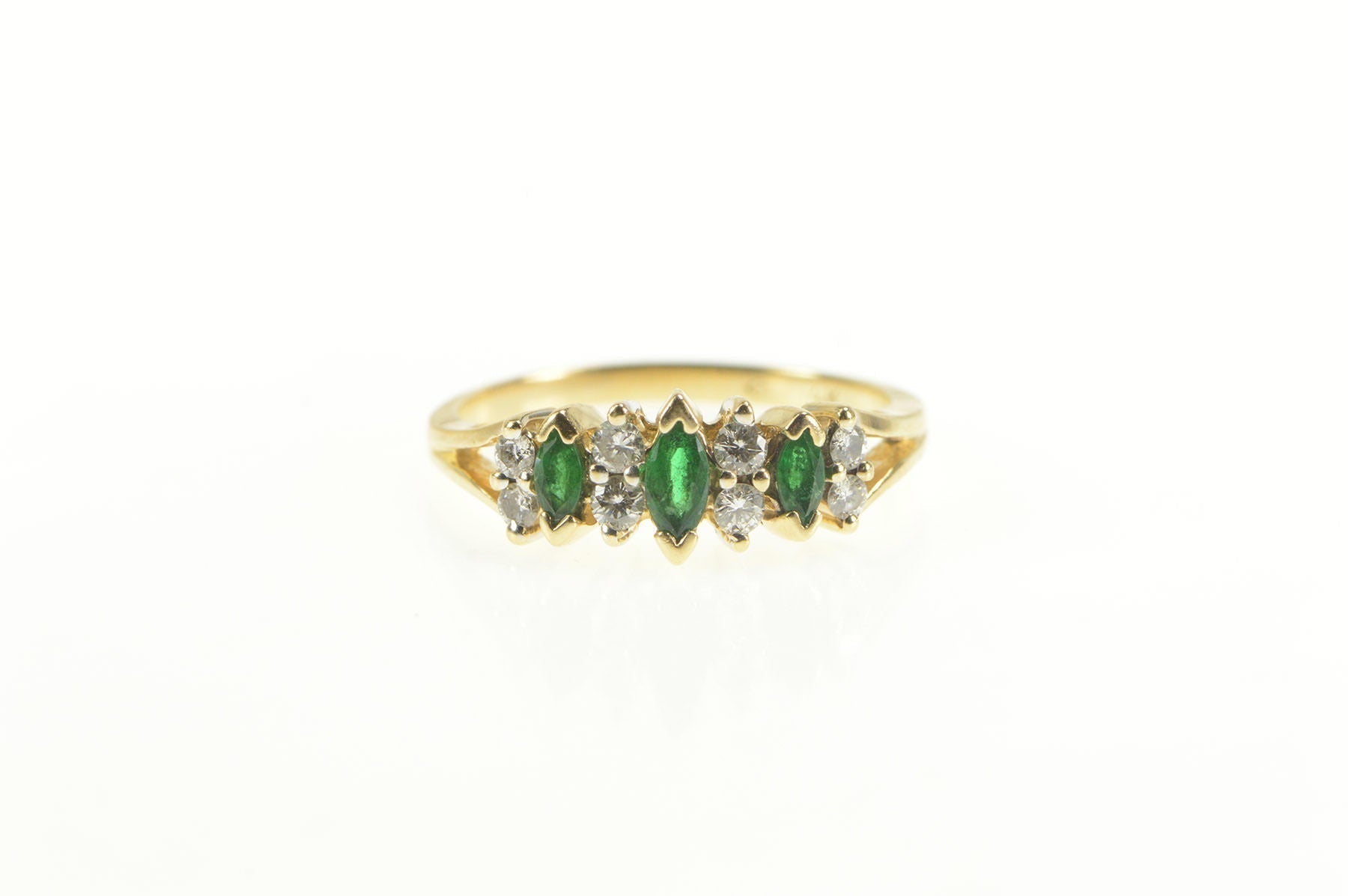 ·Item: 14K Marquise Natural Emerald Diamond Band Ring Size 6.25 Yellow Gold