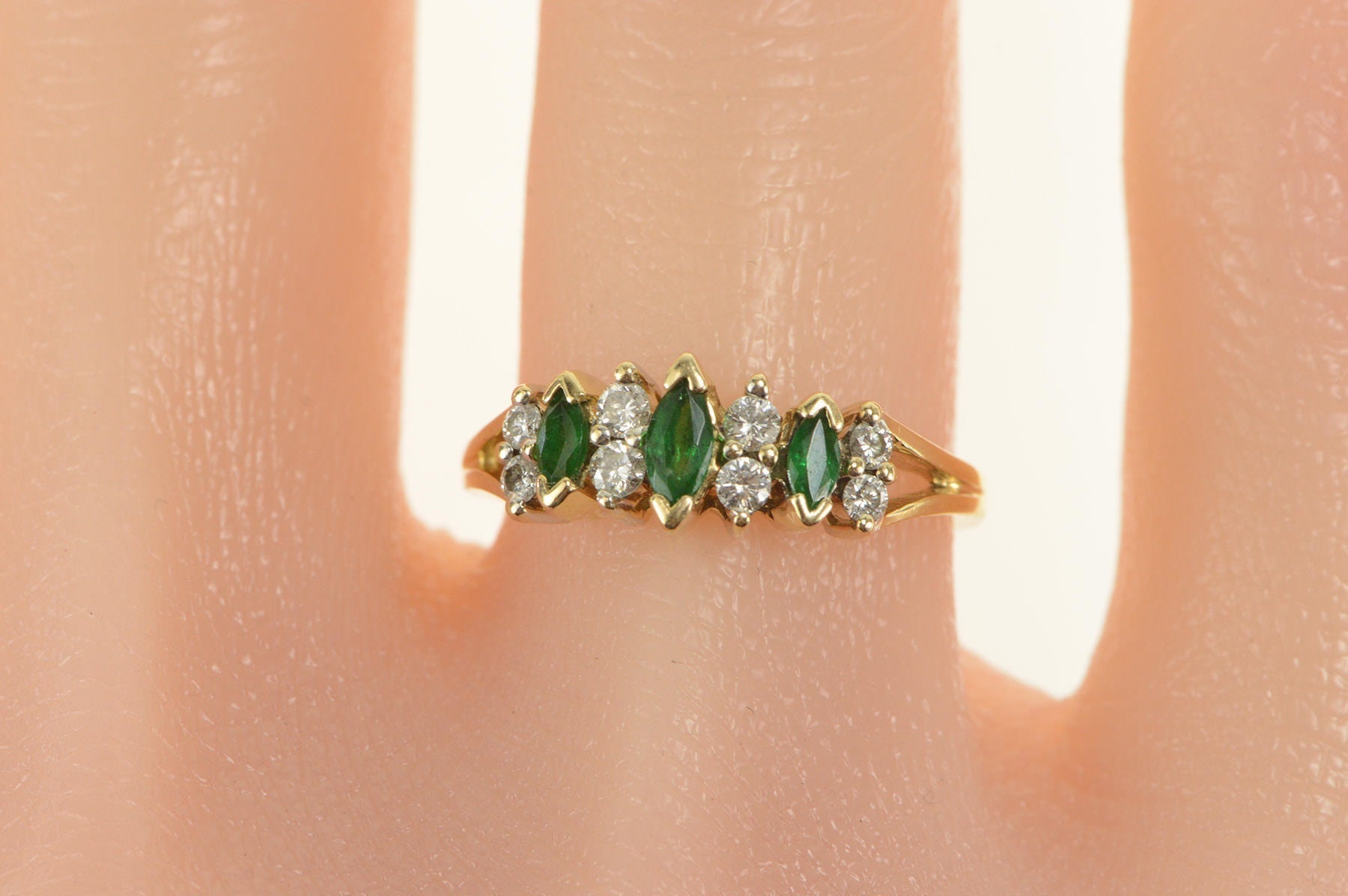 14K Marquise Natural Emerald Diamond Band Ring Yellow Gold
