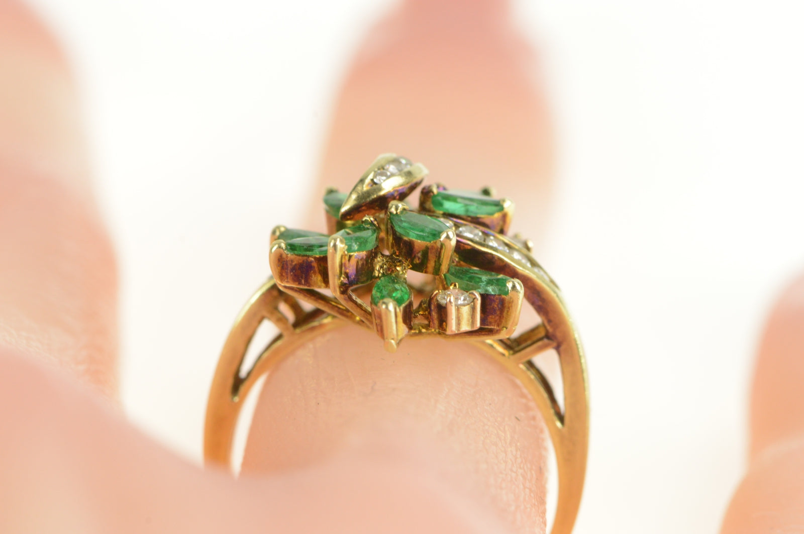 ·Item: 14K Marquise Natural Emerald Diamond Cluster Ring Size 6.75 Yellow Gold