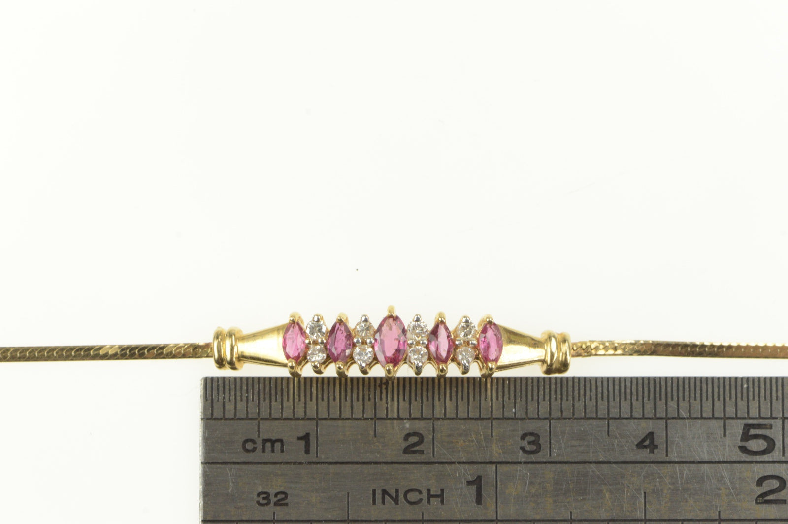 ·Item: 14K Marquise Ruby Diamond Accent Square Chain Bracelet 7" Yellow Gold