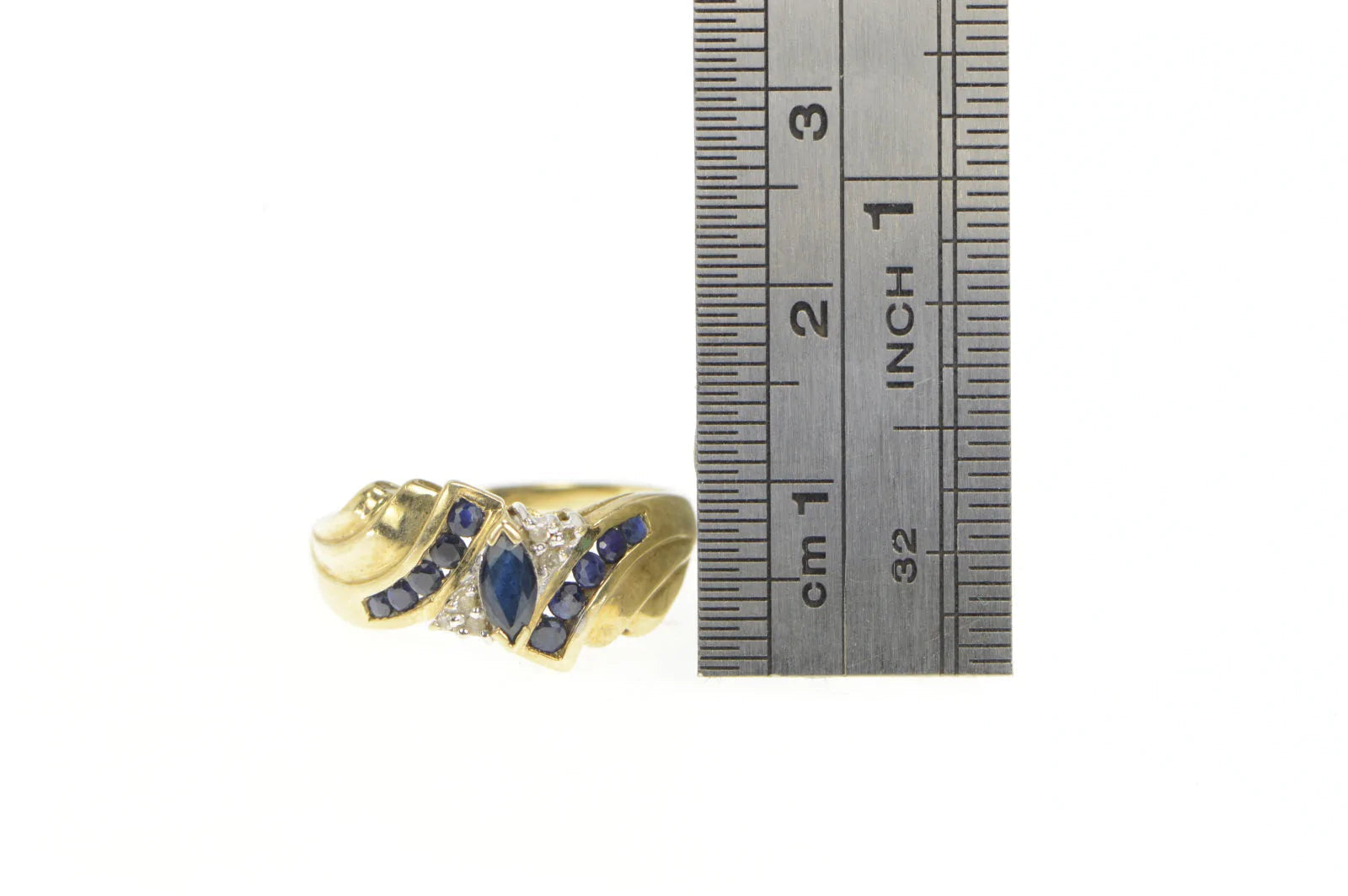 14K Marquise Sapphire Diamond Bypass Vintage Ring Yellow Gold