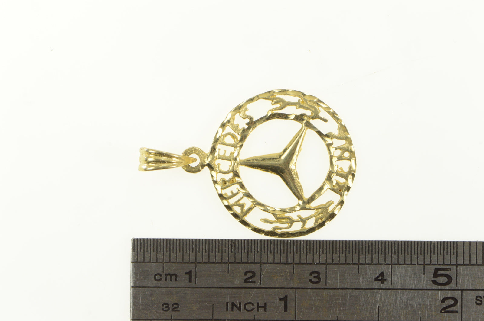 ·Item: 14K Mercedes Benz Logo Symbol Diamond Cut Charm/Pendant Yellow Gold