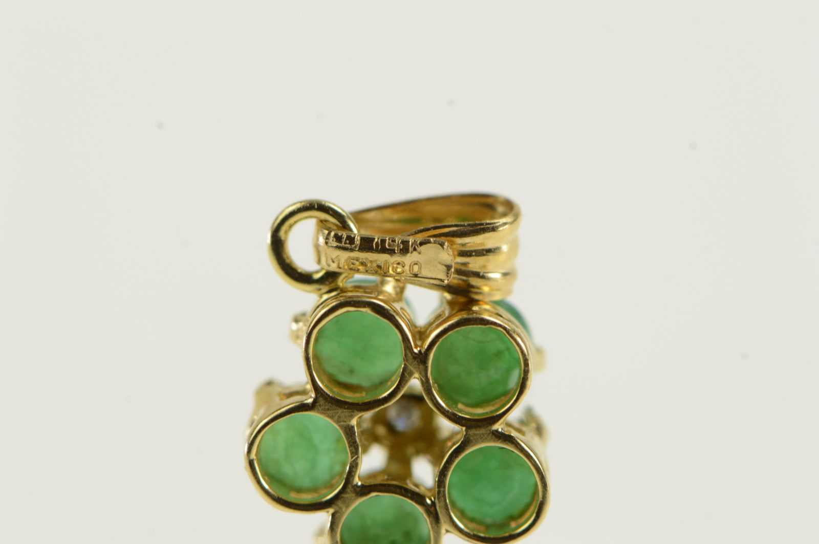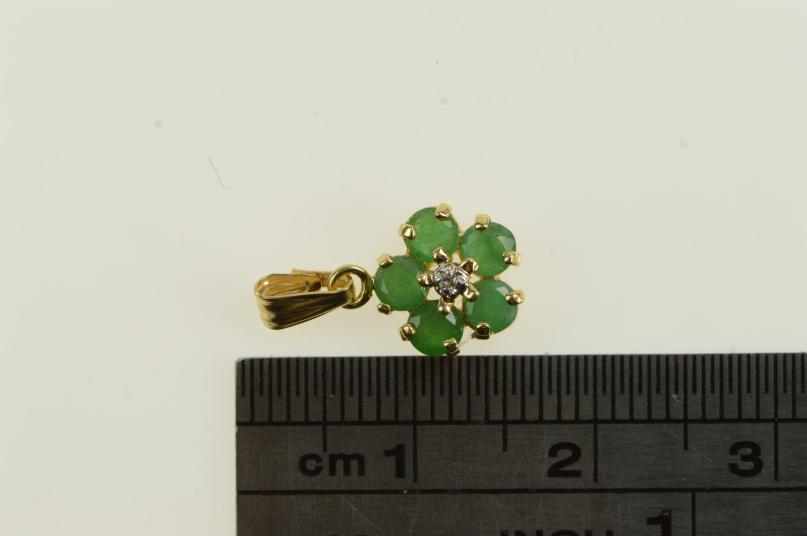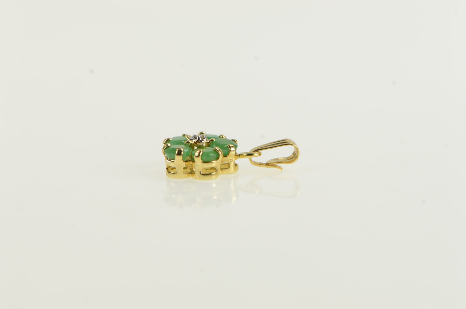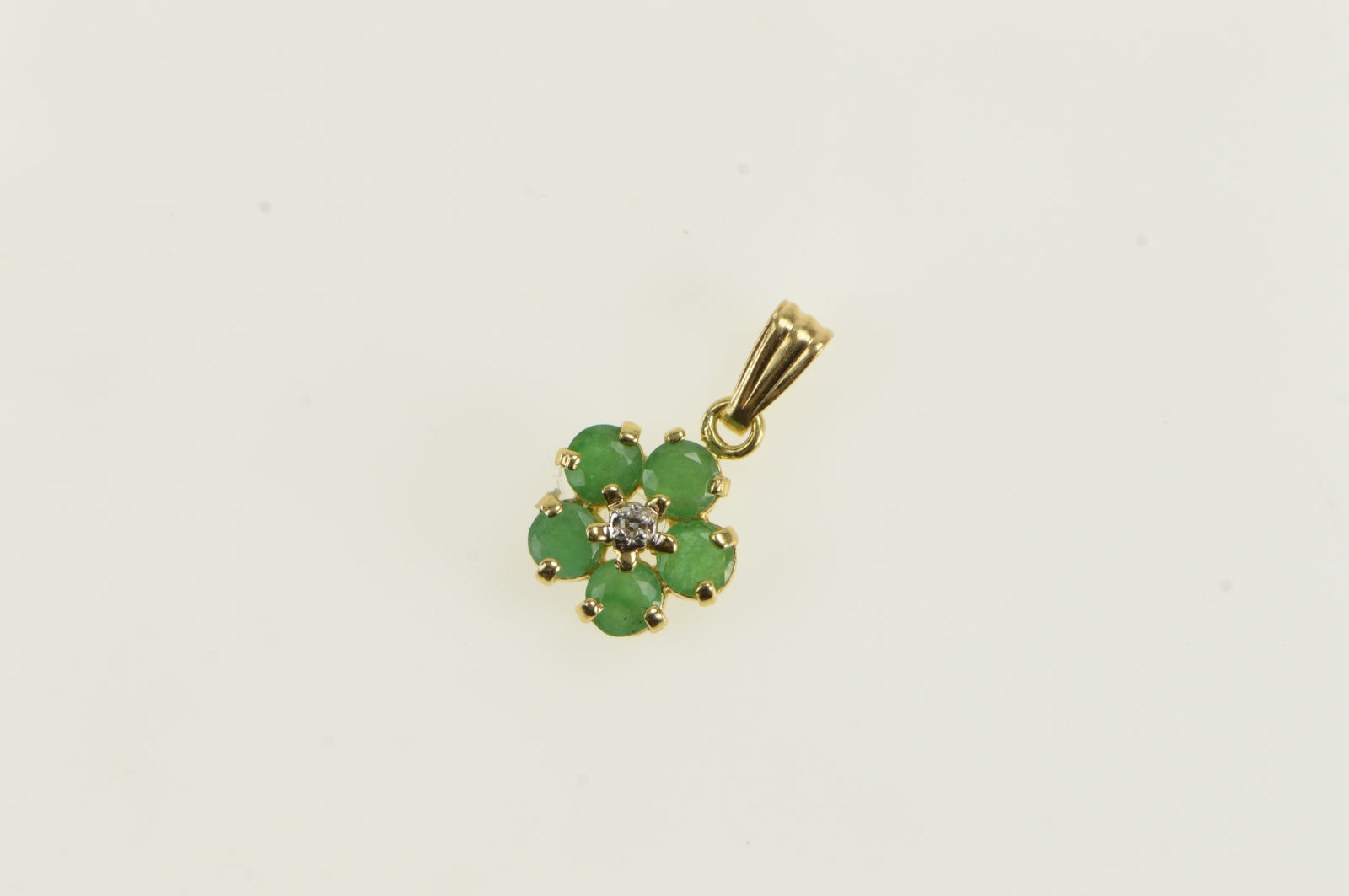 14K Natural Emerald Flower Diamond Accent Pendant Yellow Gold