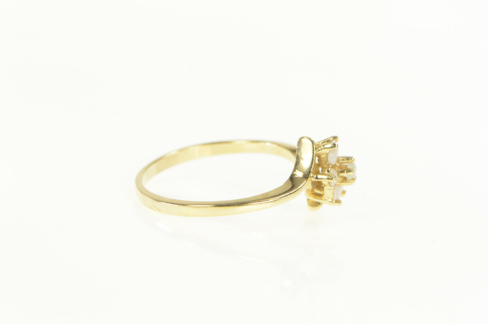 ·Item: 14K Opal Flower Cluster Halo Bypass Ring Size 7.5 Yellow Gold