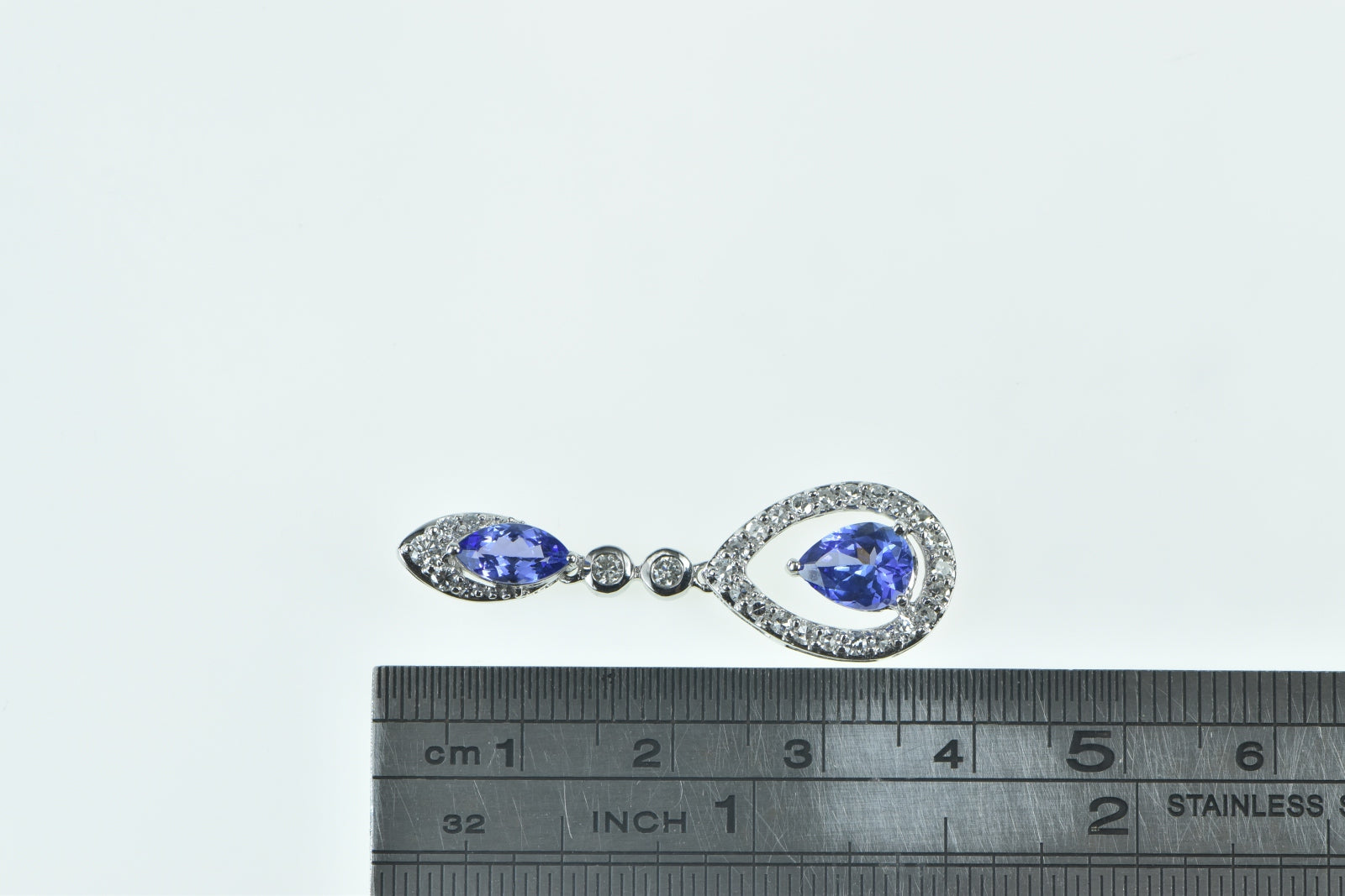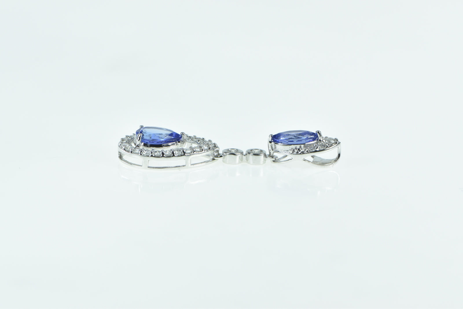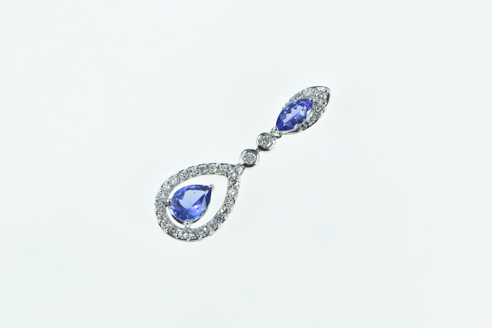 ·Item: 14K Ornate Tanzanite Diamond Halo Drop Vintage Pendant White Gold