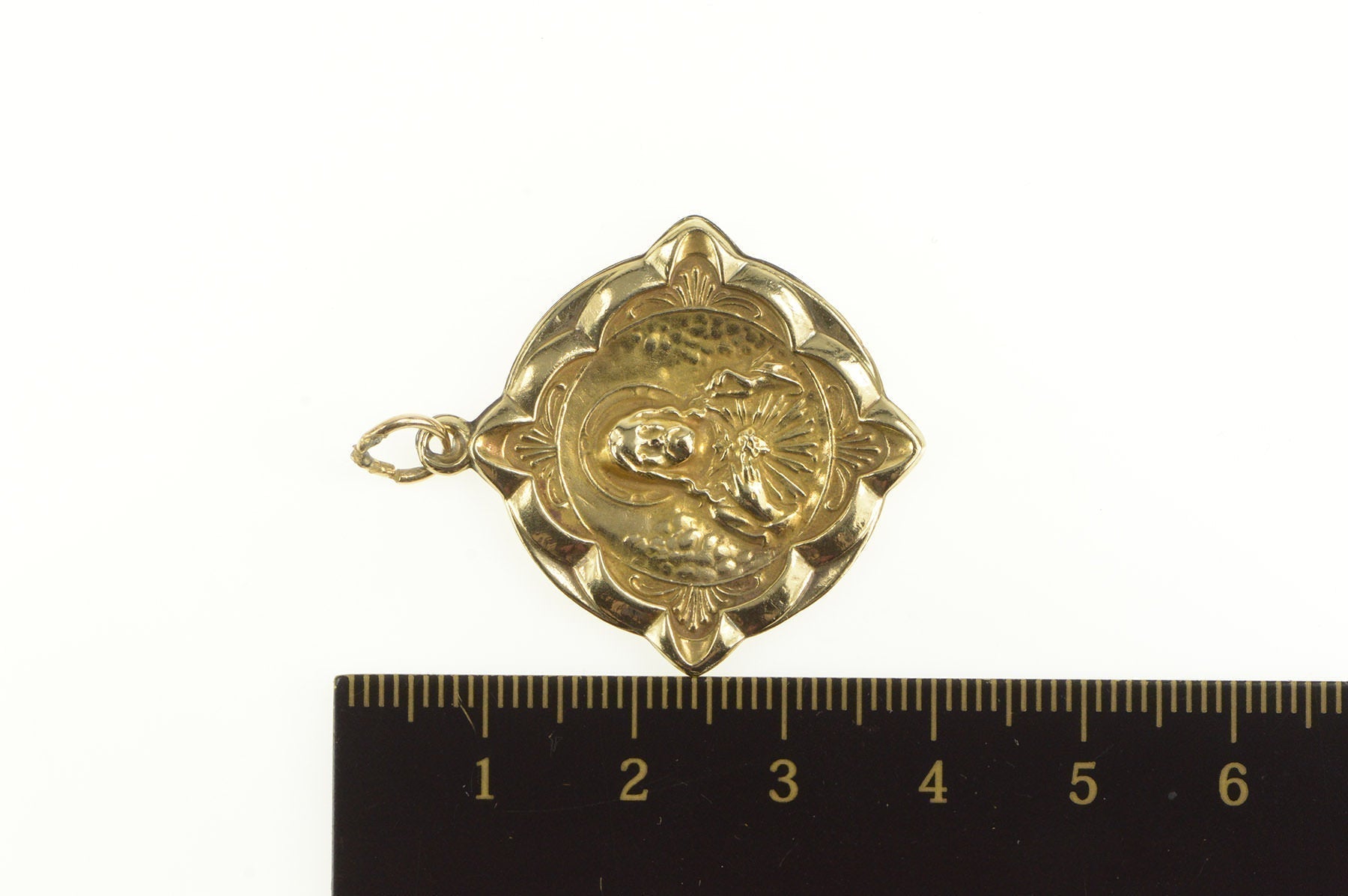 14K Ornate Victorian Mother Mary Jesus Christian Pendant Yellow Gold