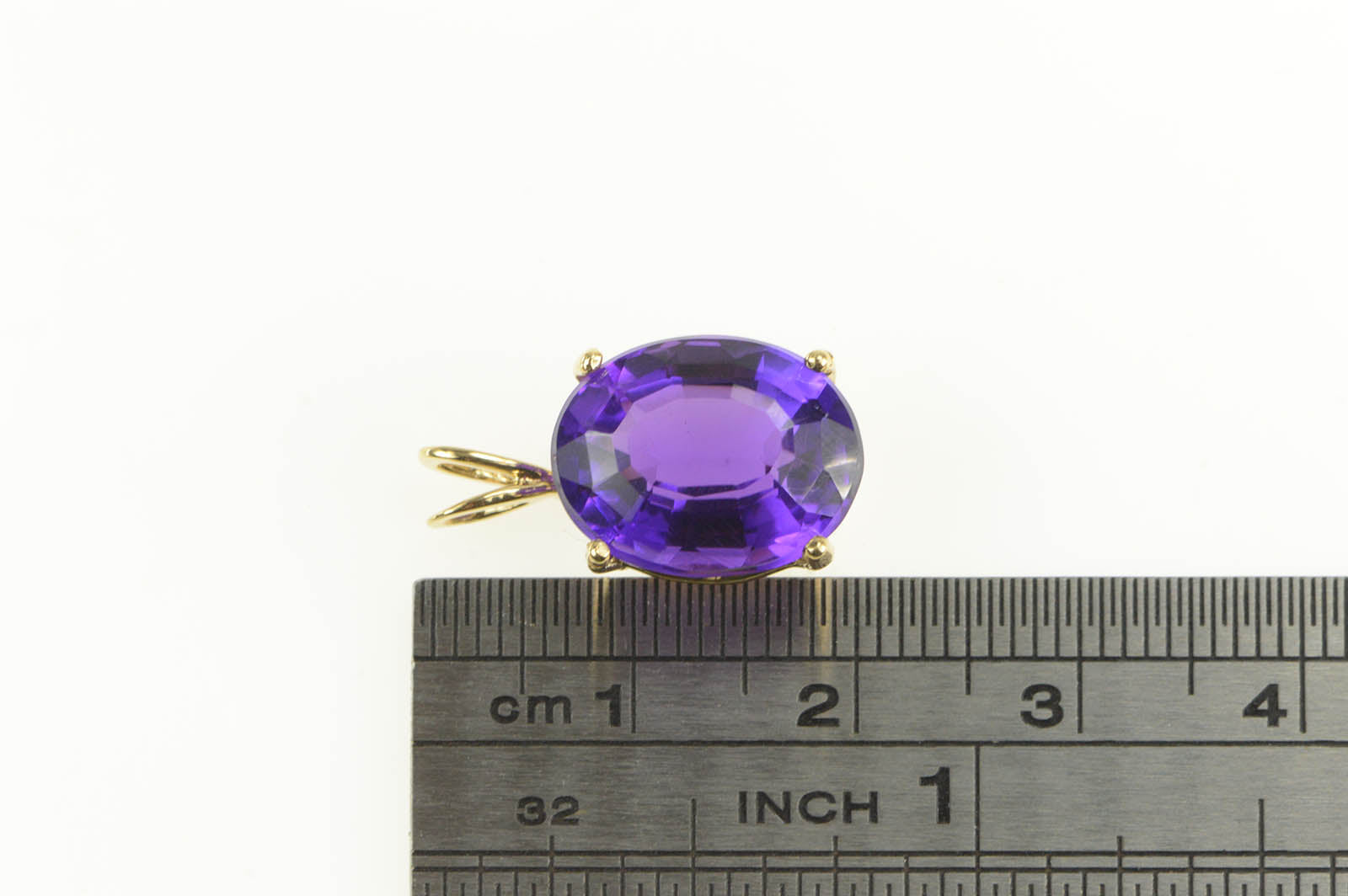 14K Oval Amethyst Classic Solitaire Statement Pendant Yellow Gold